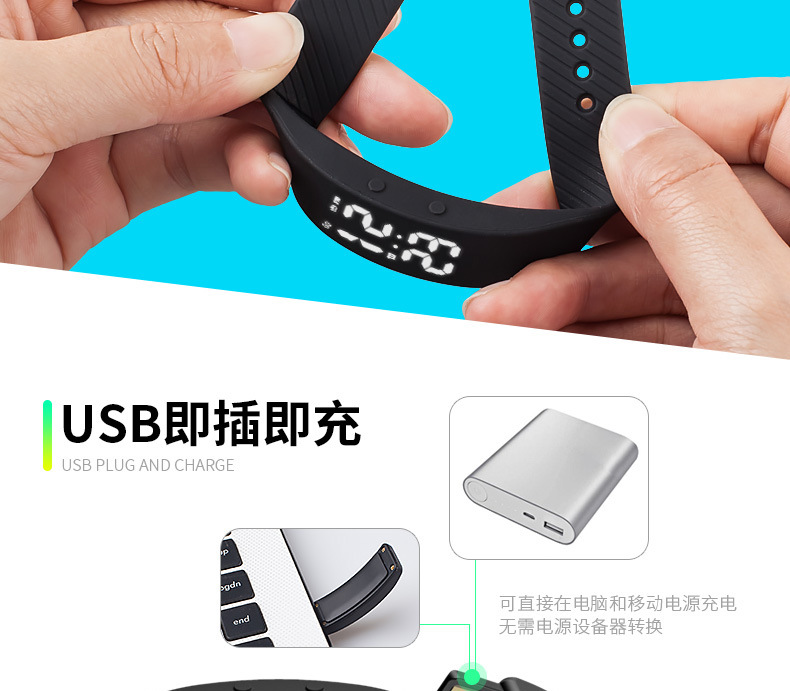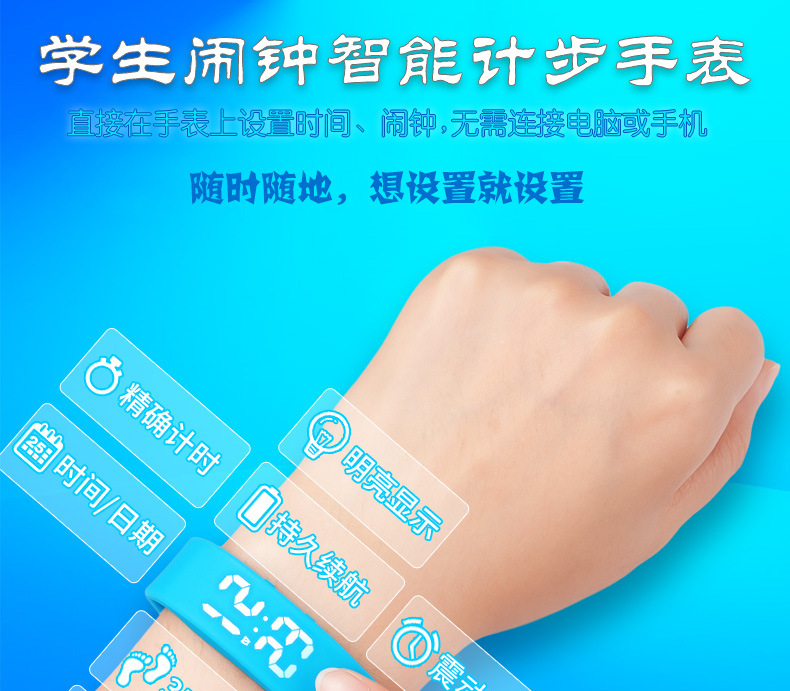 Pulsera inteligente Edison para estudiantes y niños, pulsera deportiva con podómetro, reloj despertador vibratorio, reloj electrónico LED de fábrica