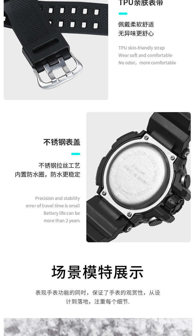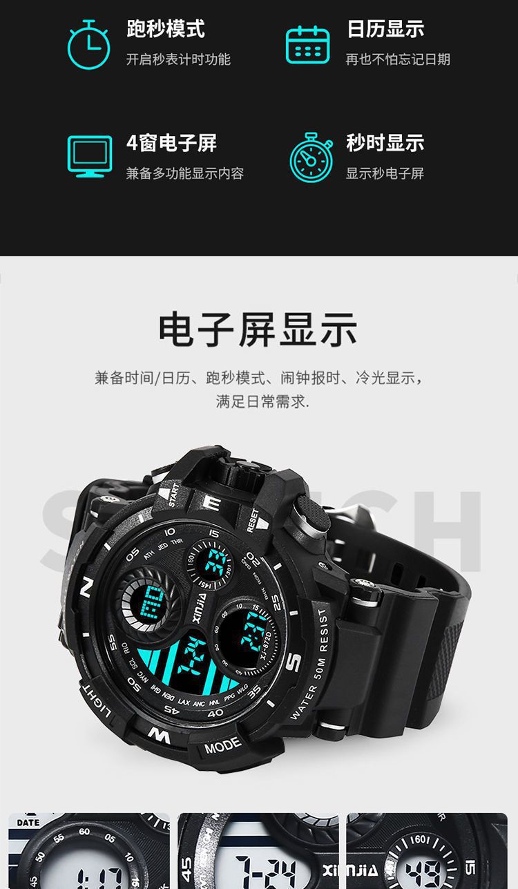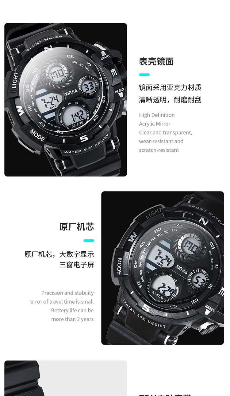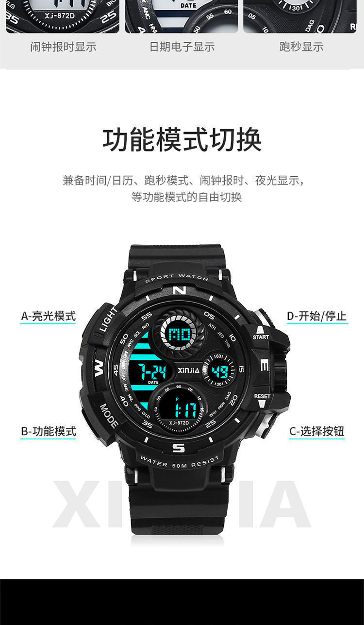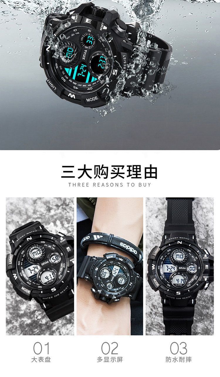 Fábrica mayorista de relojes de estudiantes de secundaria varones nocturna impermeable reloj electrónico multifuncional reloj de moda deportivo grande