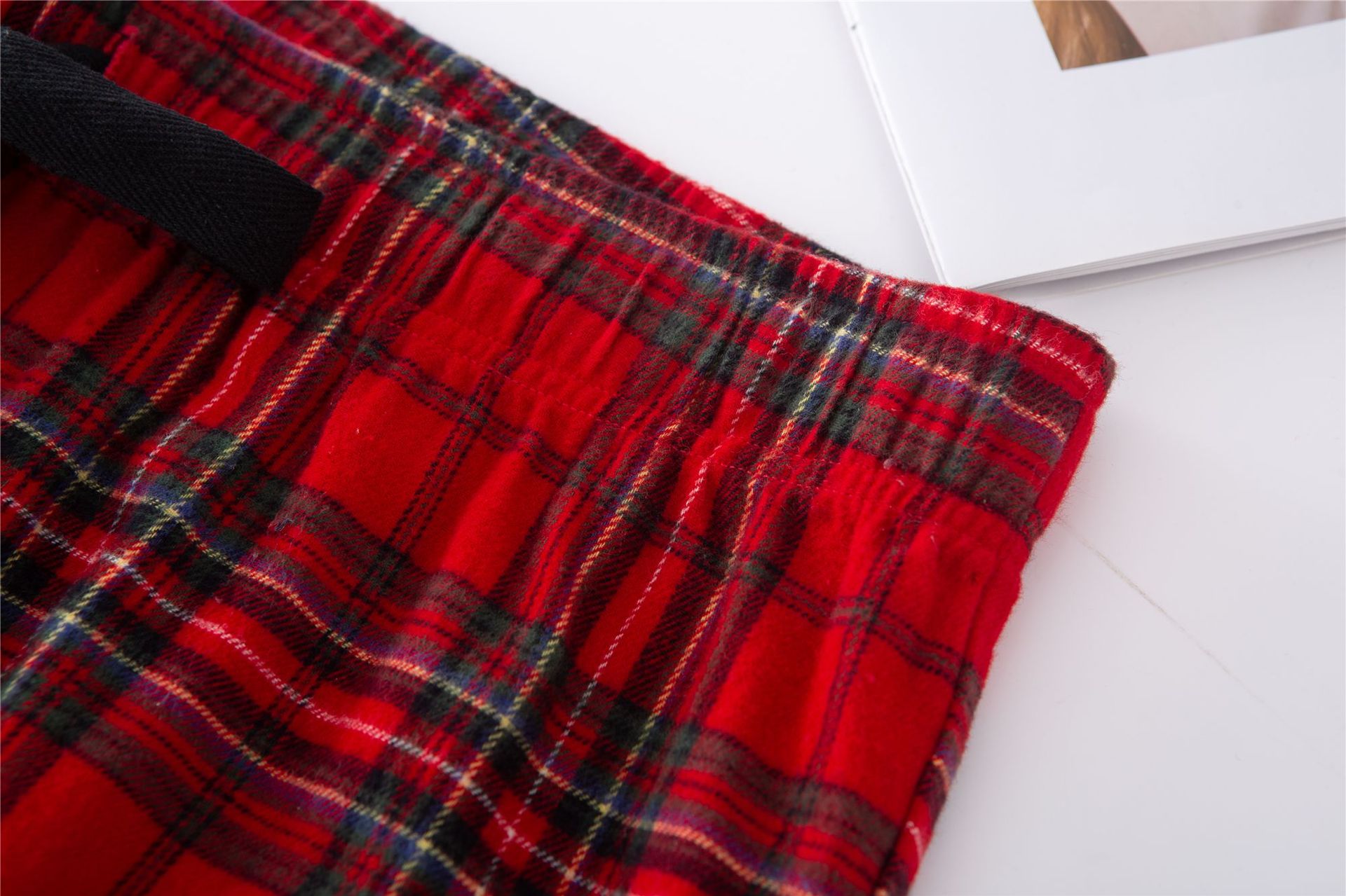 Otoño e invierno traje de pijama de hombre y mujer Navidad pareja casa desgaste franela cepillado rojo Plaid suelta más tamaño de manga larga