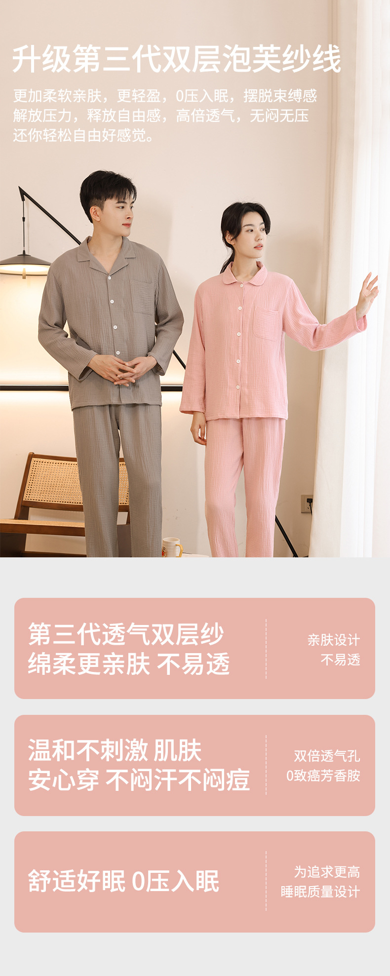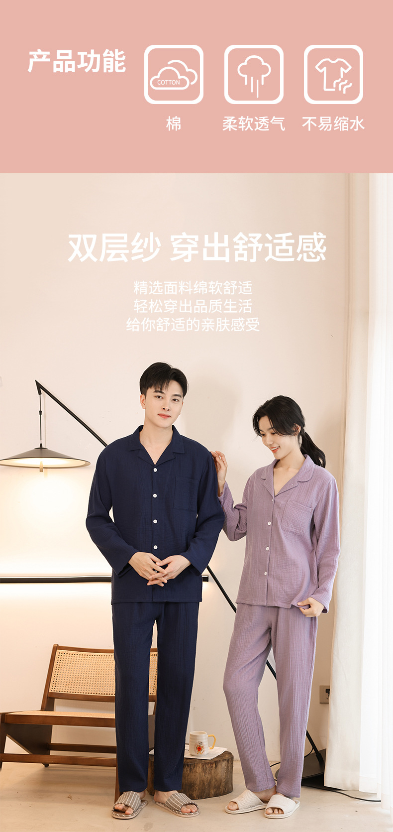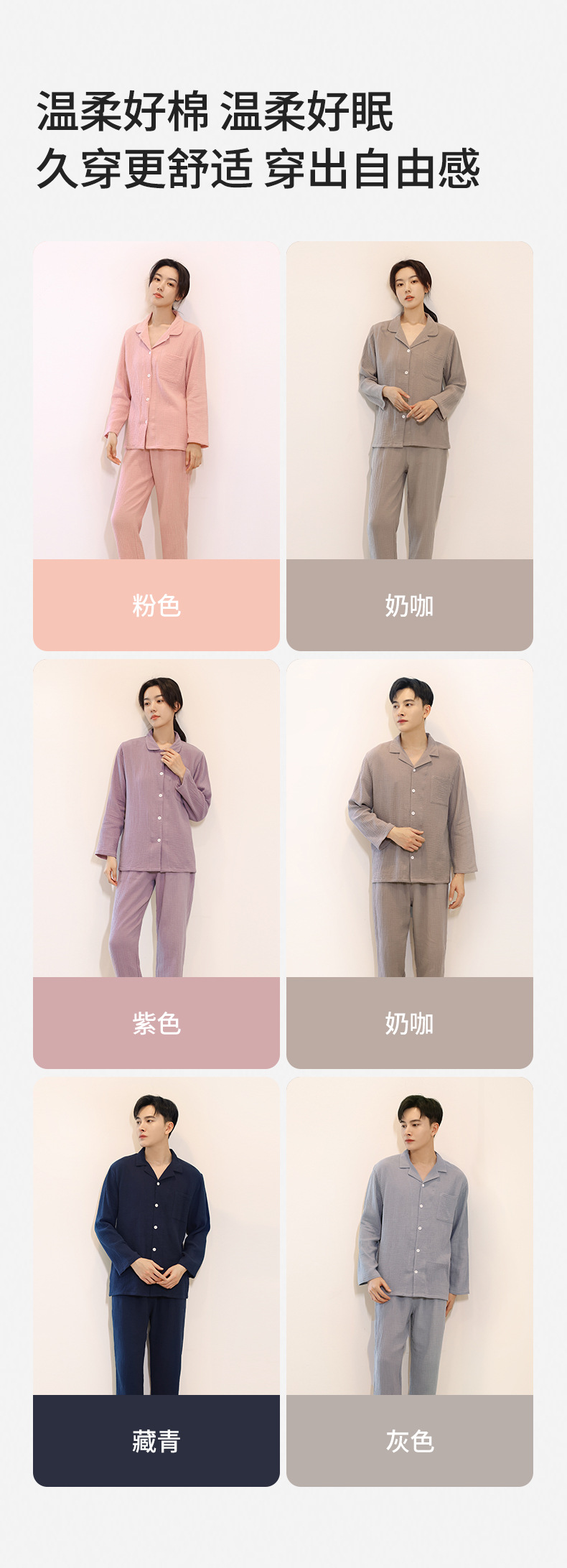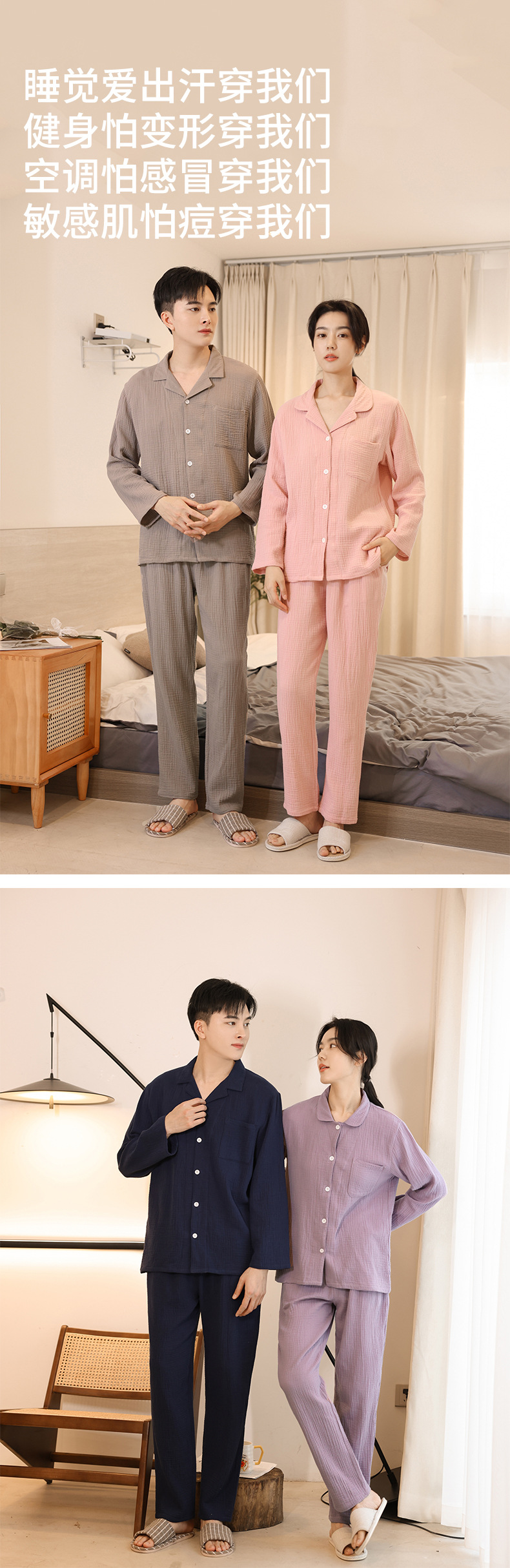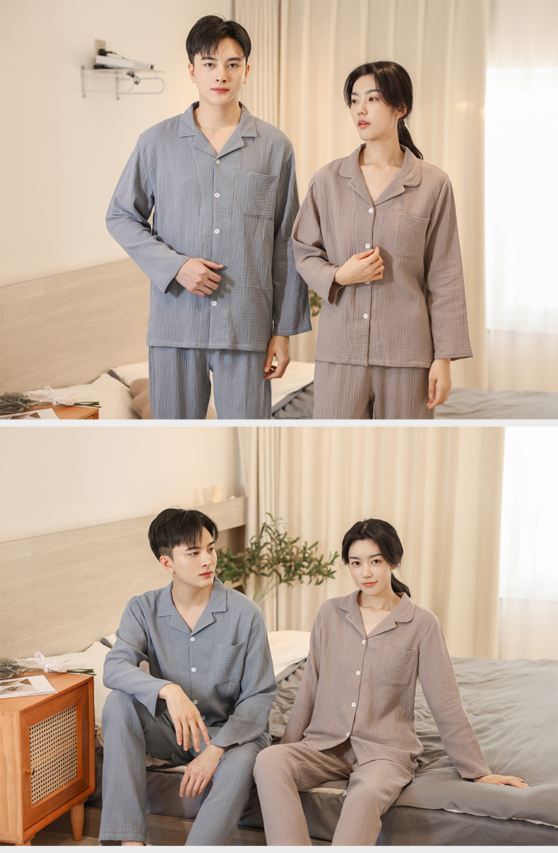 Pijamas de algodón de manga larga de las mujeres de primavera y otoño 2022 nueva de dos piezas larga suelta pareja casual ropa para el hogar