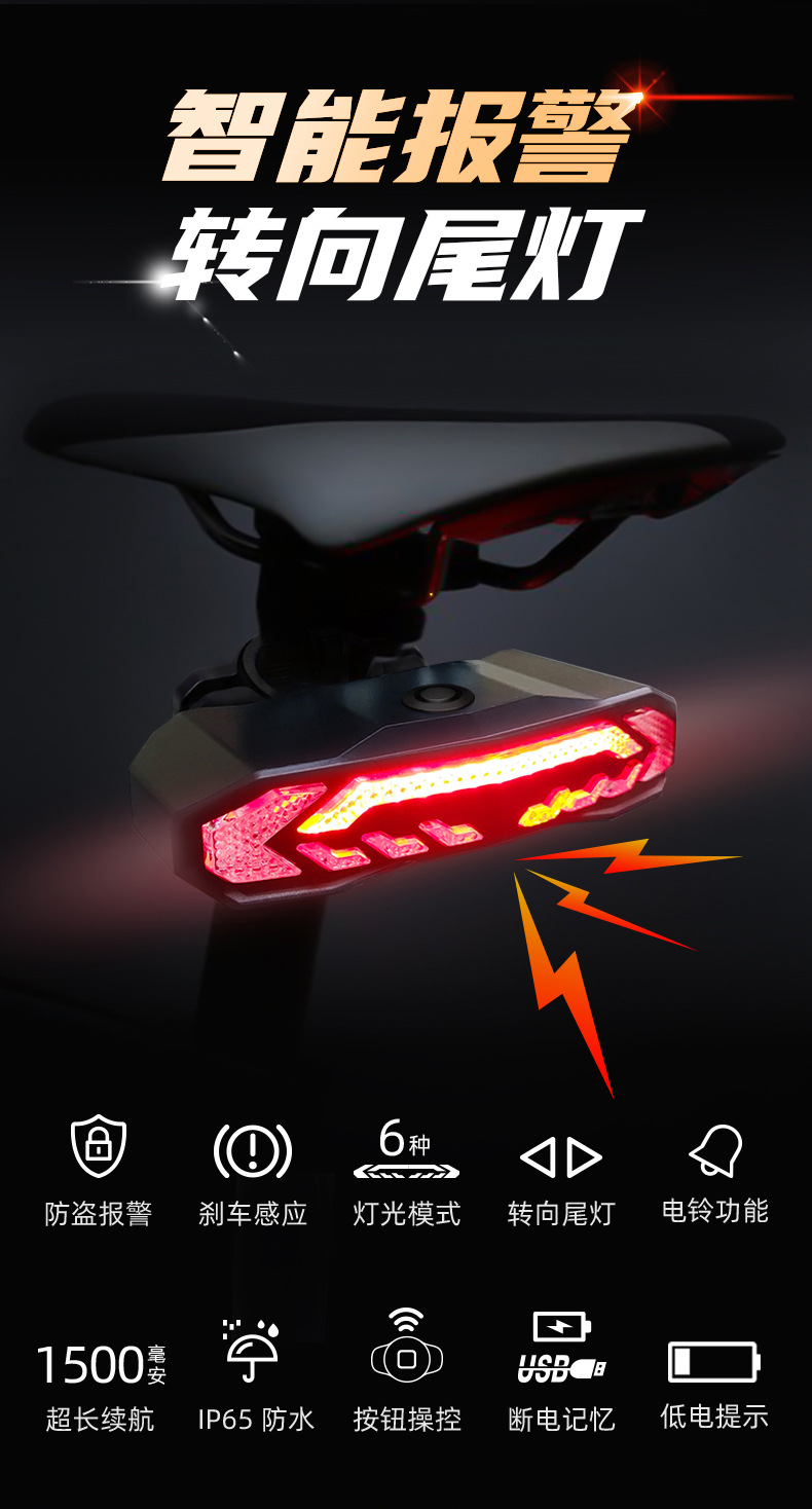 Bicicleta inteligente freno cola luz USB carga sirena al aire libre noche equitación bicicleta de montaña dirección LED cola luz impermeable