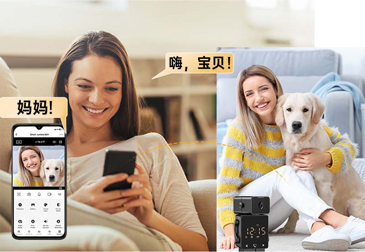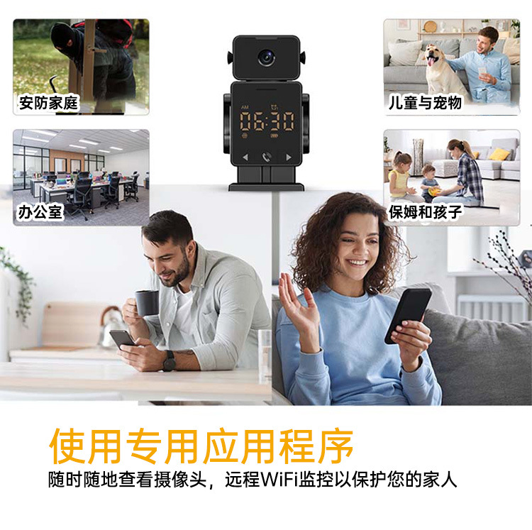 Tuya cámara de reloj despertador hogar HD sin enchufar visión nocturna remota llamada con una tecla cámara de vigilancia de graffiti