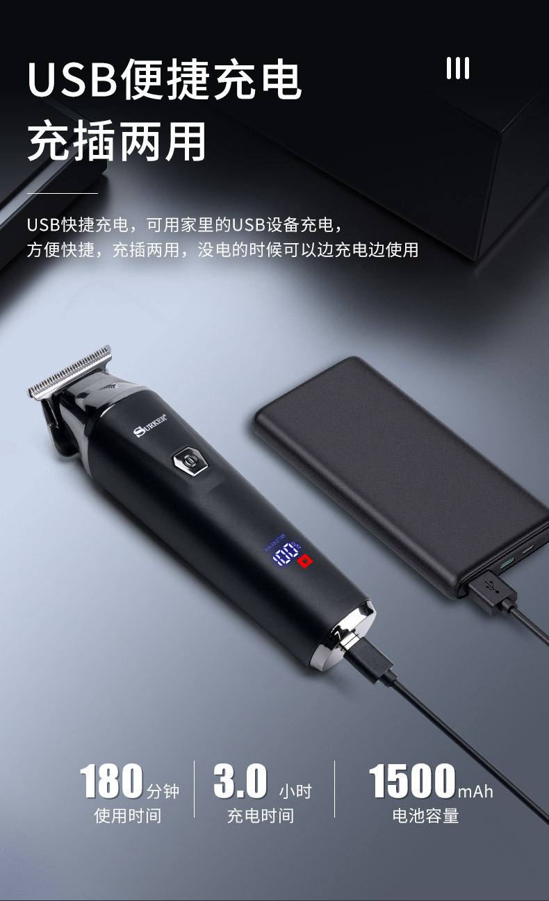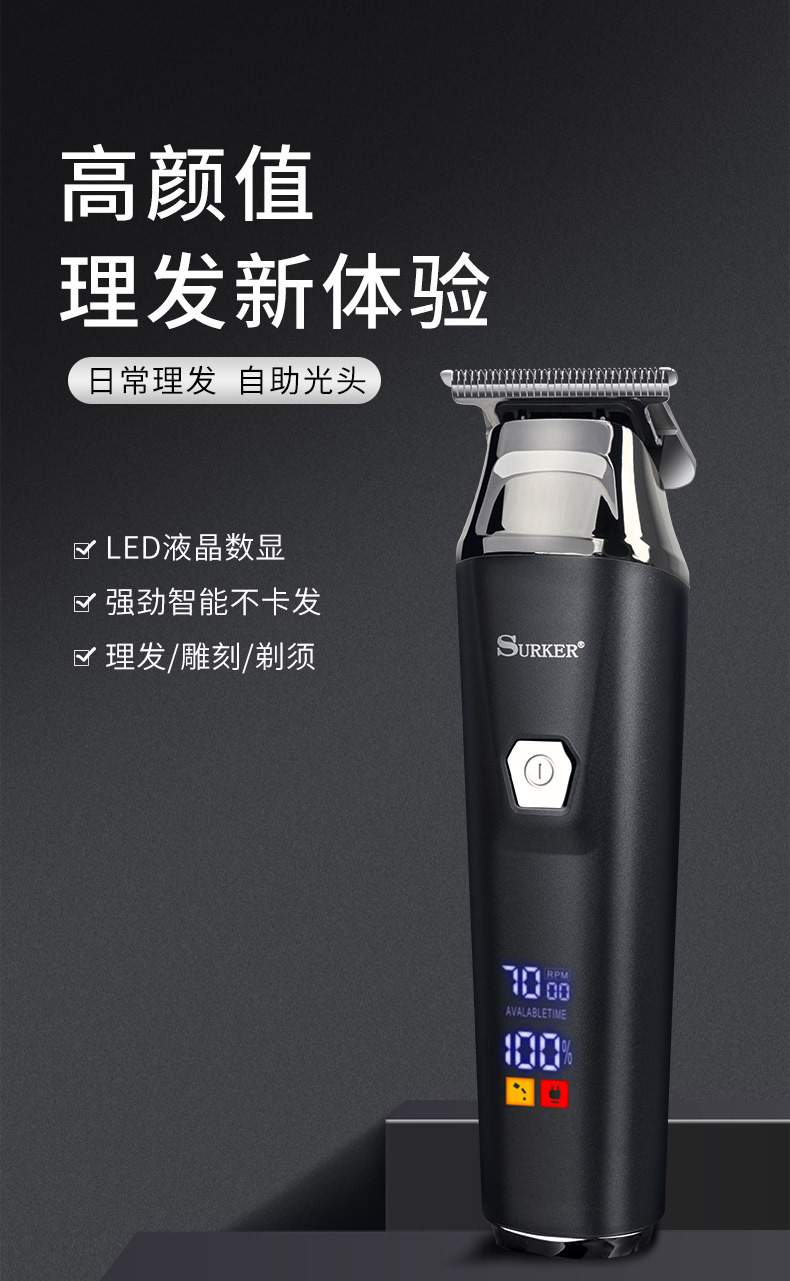 Tijeras de peluquería de alta potencia tijeras de peluquero especiales LED pantalla digital tijeras de cabeza de aceite eléctrico USB portátil recargable cortadora eléctrica al por mayor