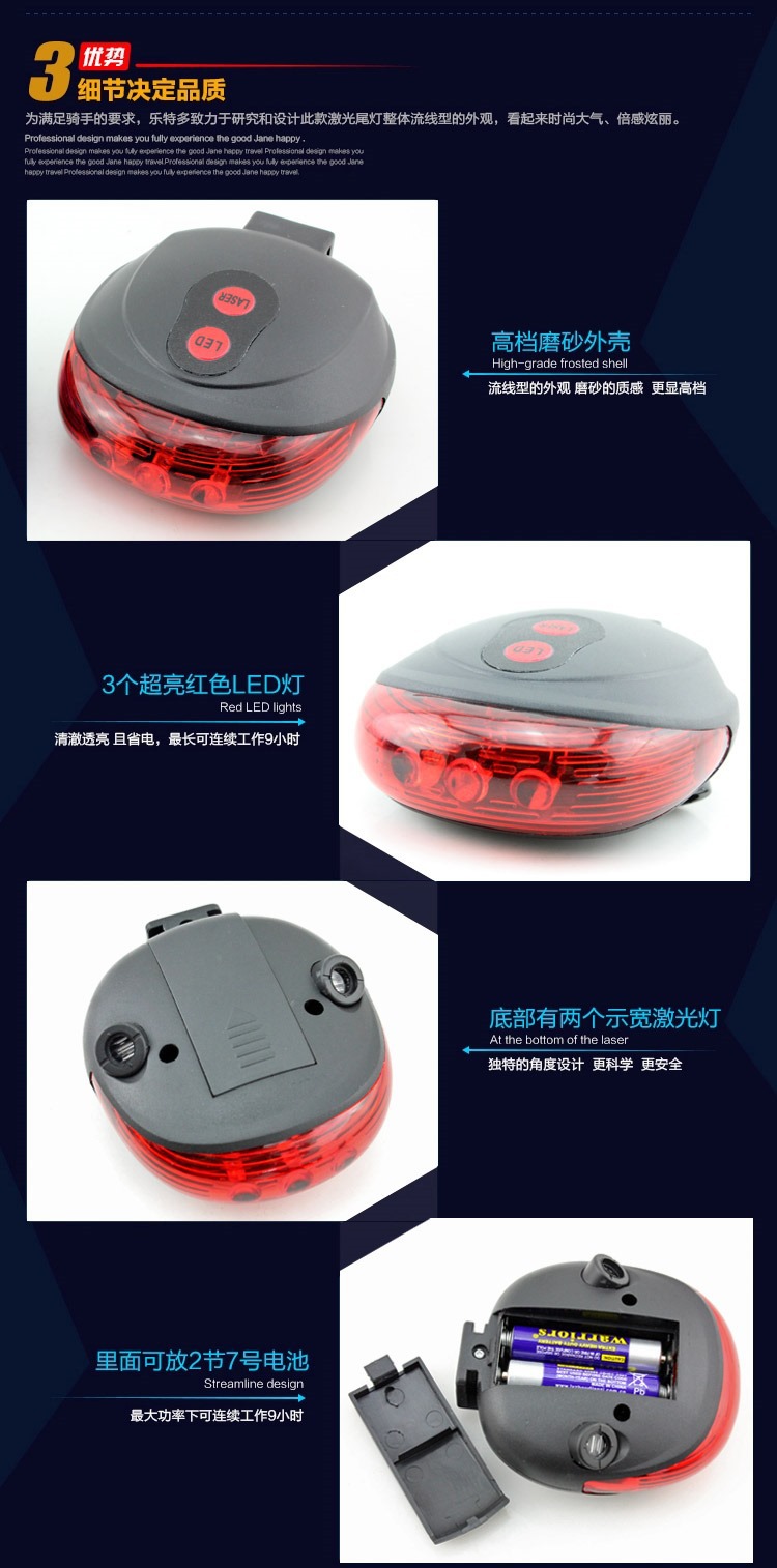 Comercio exterior transfronterizo bicicleta láser luz trasera luz de advertencia de seguridad bicicleta de montaña equipo 5LED ronda UFO