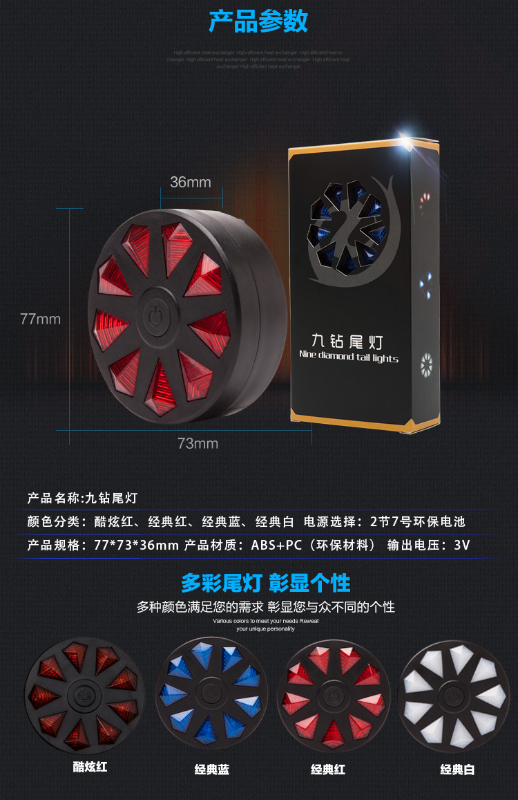 Nueve Luz de cola de diamante [Rojo frío sin láser]