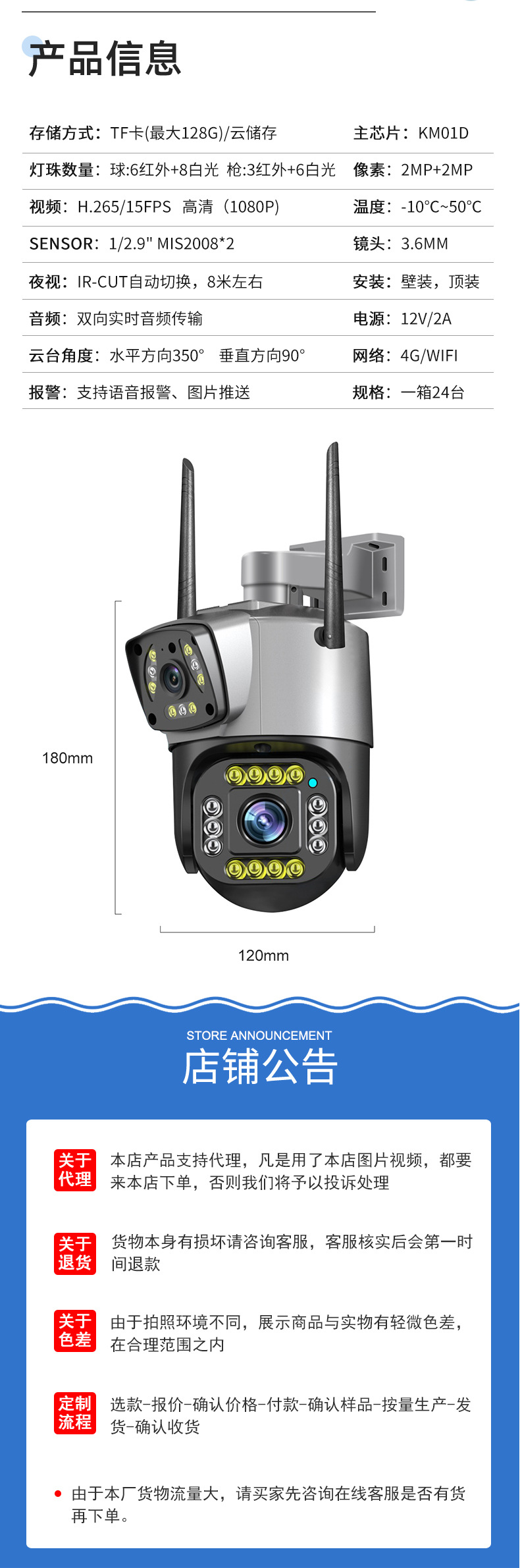 Cámara de lente dual 360 grados panorámica control remoto del hogar HD visión nocturna a todo color pistola bola vinculación Cámara