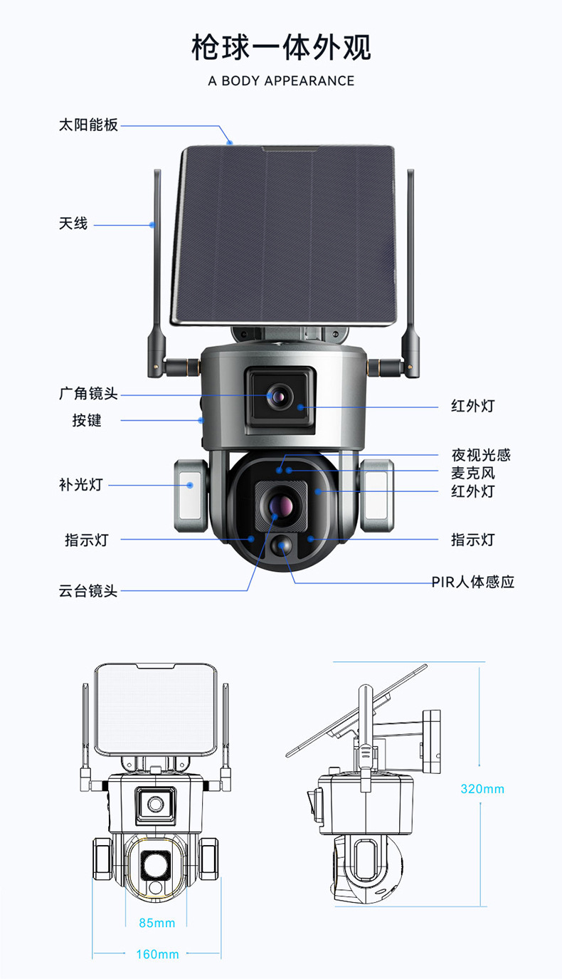8 millones de cámara solar wifi10x zoom Cámara binocular 4G cámara de vigilancia Solar