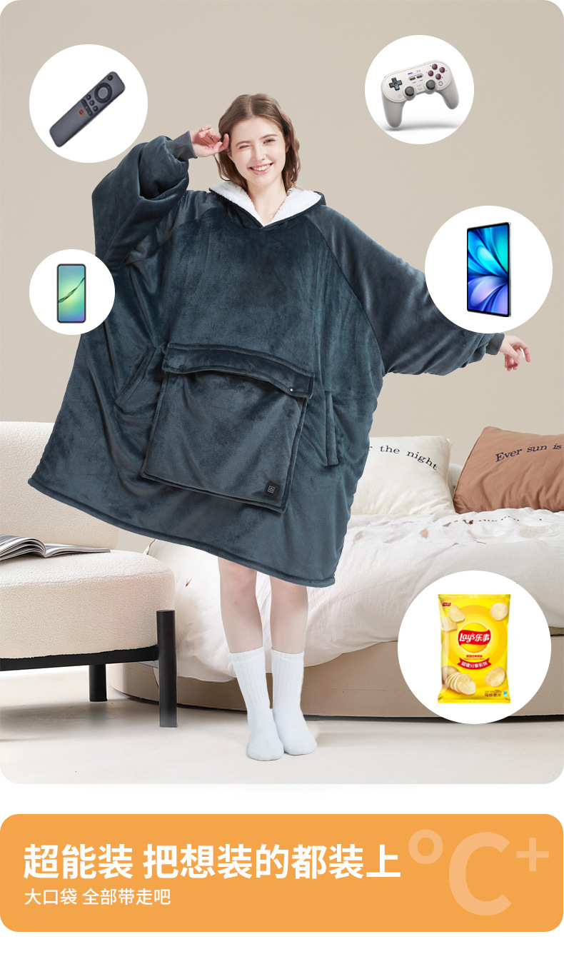 Manta perezosa con capucha con calefacción de tres zonas USB de Amazon