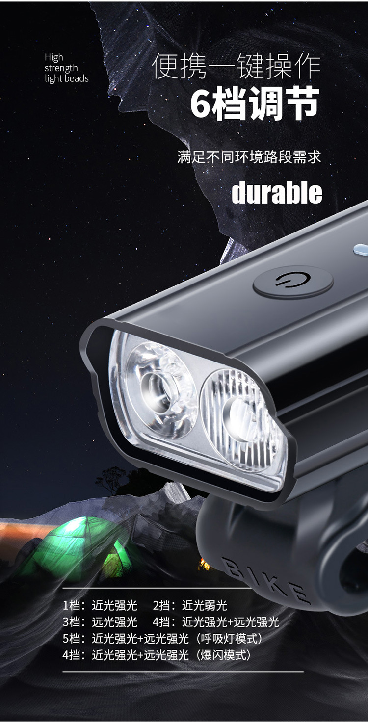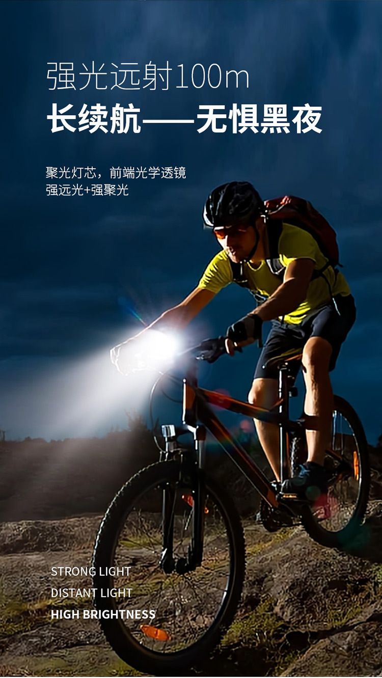 Luz para bicicleta de montaña para exteriores para ciclismo nocturno, iluminación de luz potente, faro cuadrado antivibración, LED recargable a prueba de agua