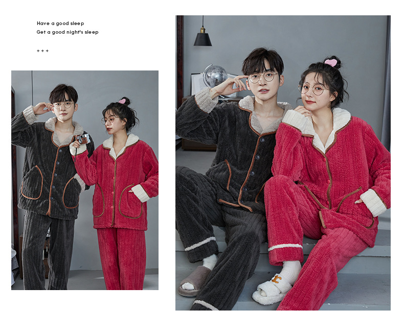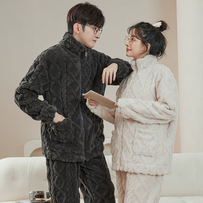 Al aire libre de las mujeres pijamas hombres Otoño e Invierno franela engrosada collar cremallera coral fleece pareja desgaste del hogar traje