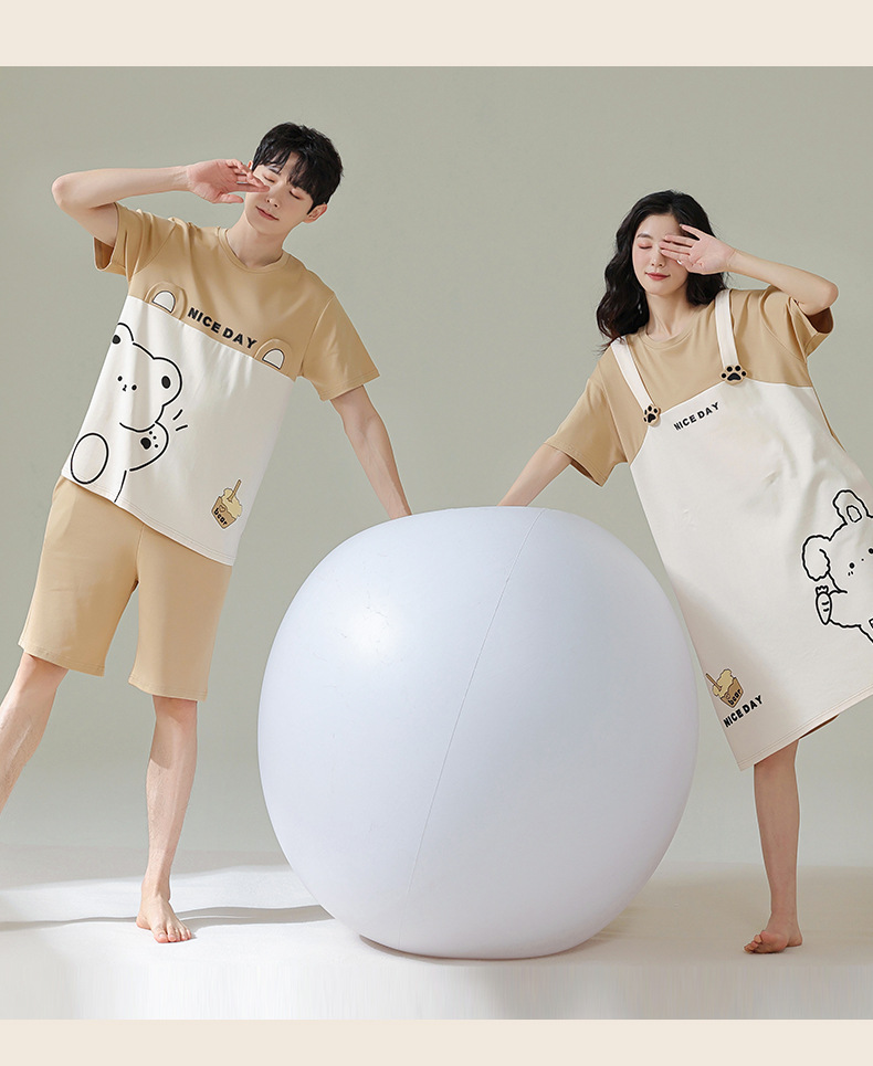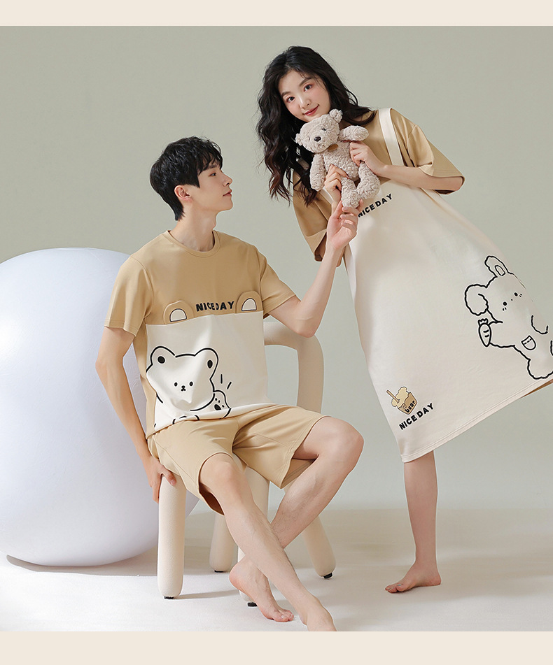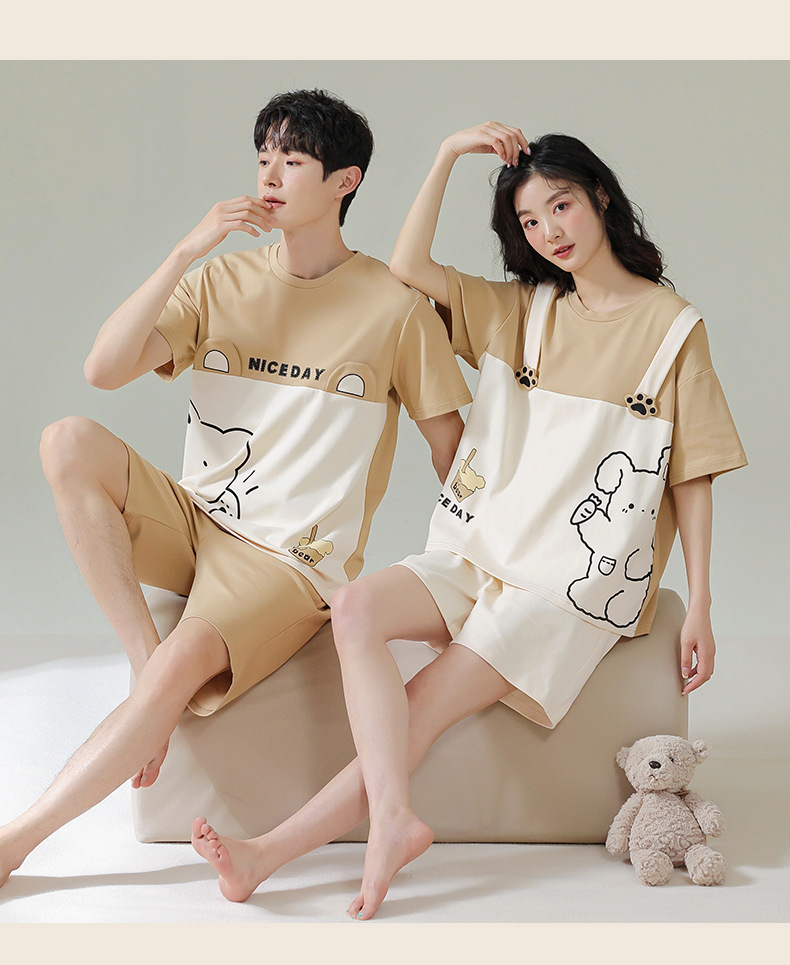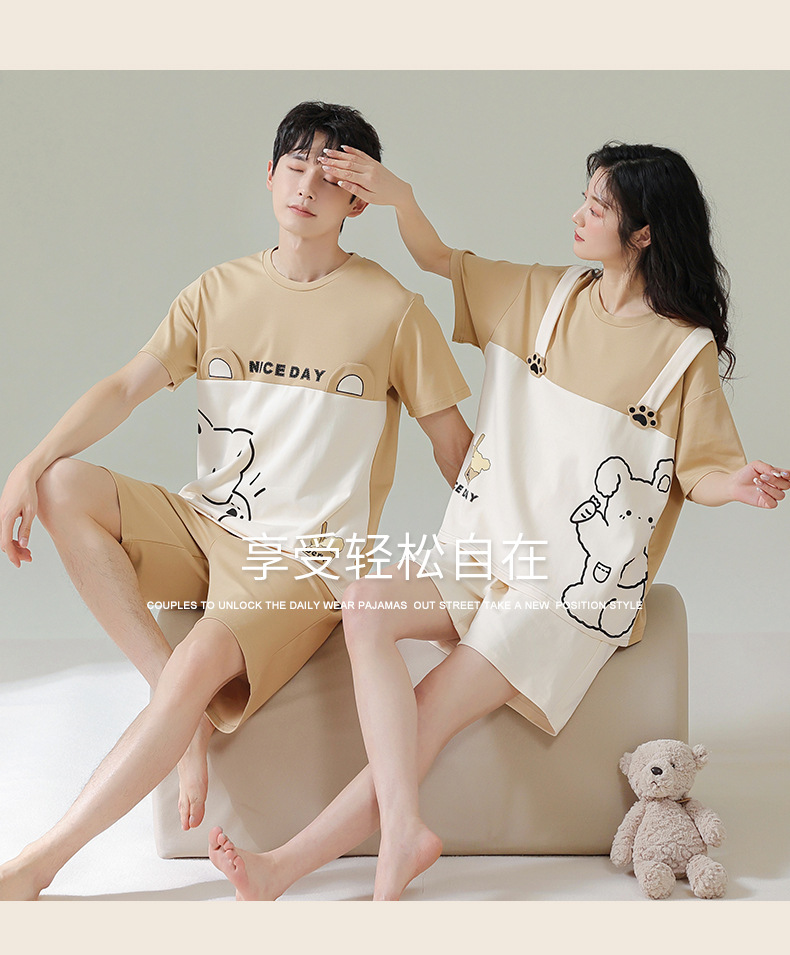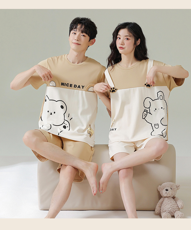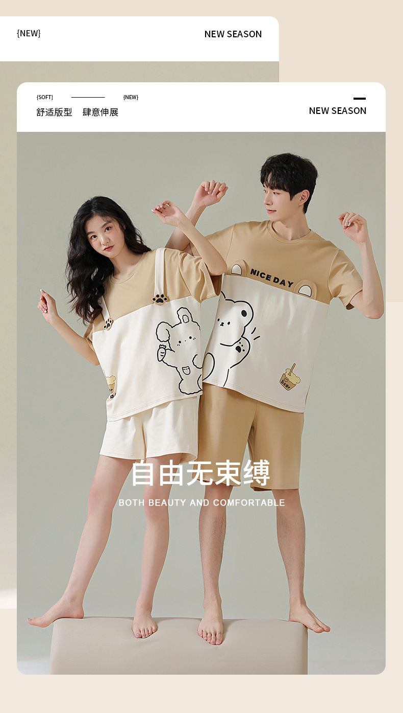 Pijamas de pareja pantalones cortos de manga corta de algodón de verano hombres y mujeres traje de homewear delgado de dibujos animados de oso lindo de algodón