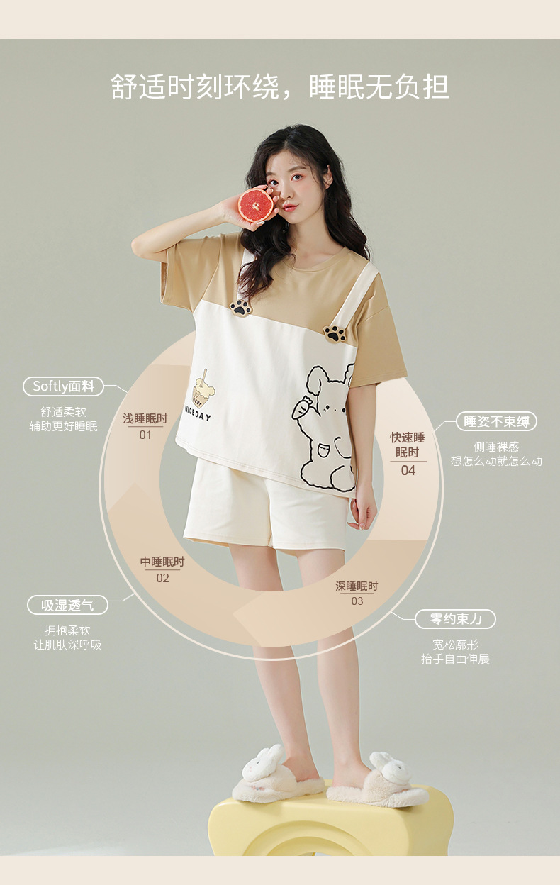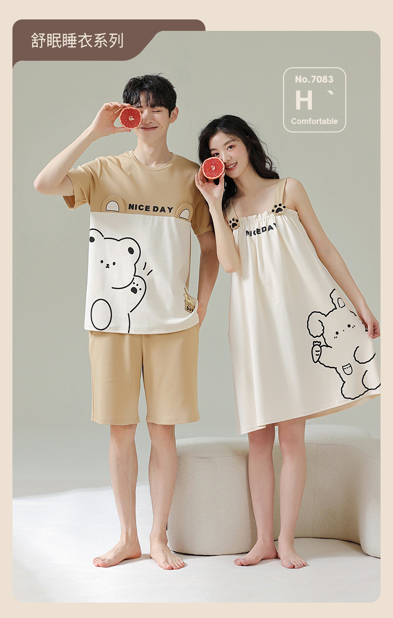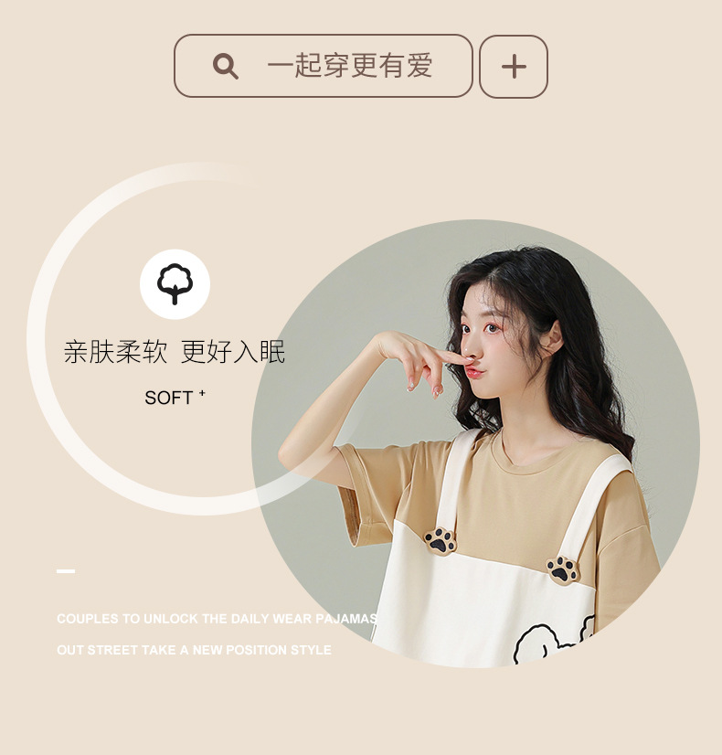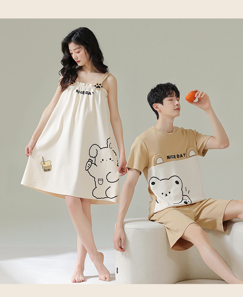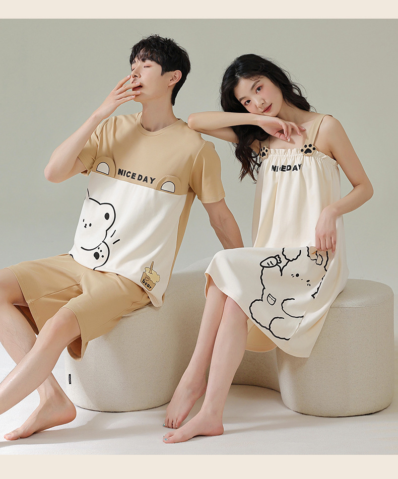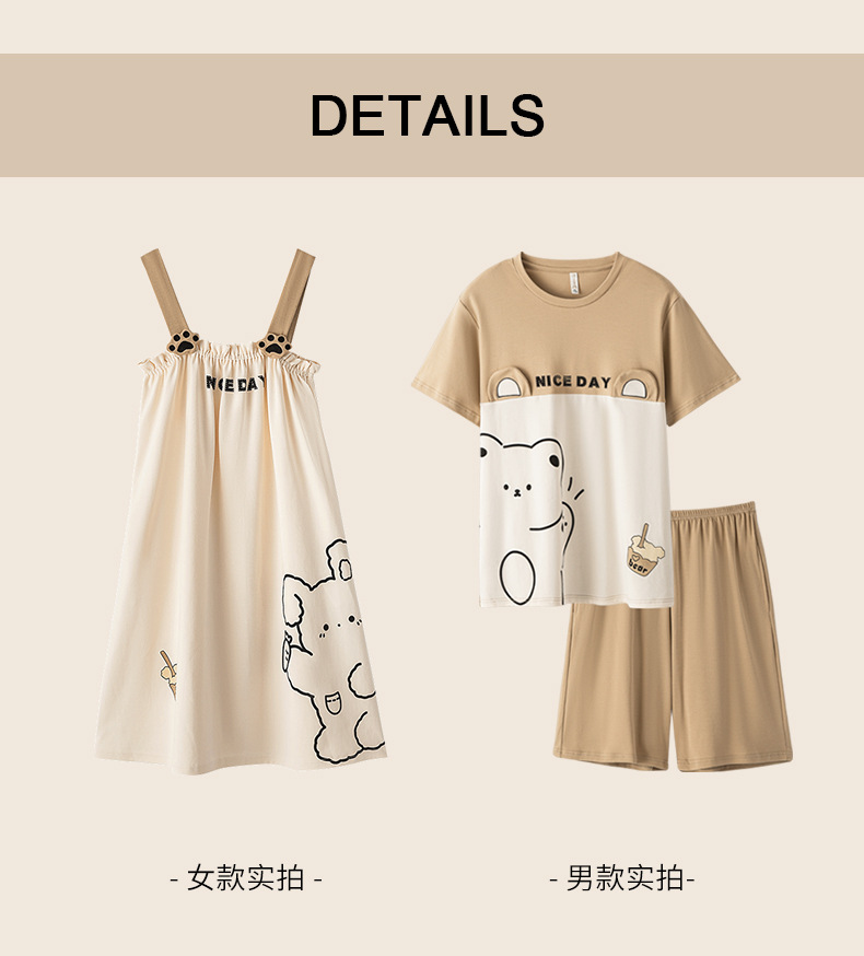 Pijamas de pareja pantalones cortos de manga corta de algodón de verano hombres y mujeres traje de homewear delgado de dibujos animados de oso lindo de algodón