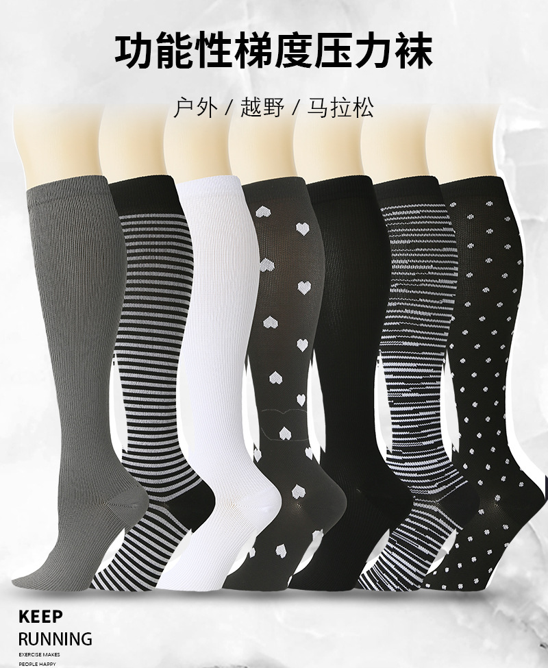 Amazon deportes de verano Calcetines de compresión Calcetines deportivos Calcetines elásticos hombres y mujeres medias Calcetines blanco y negro de compresión