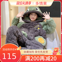 Camisón divertido de tiburón cuidadosamente seleccionado pijamas de una pieza para padres e hijos comercio exterior invierno coral vellón más terciopelo lindo saco de dormir para niños