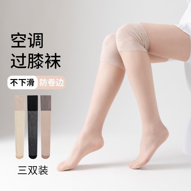 Aire acondicionado de verano rodillera medias de seda con núcleo anti-enganche calcetines de pierna fría sexy calcetines de rodilla alta