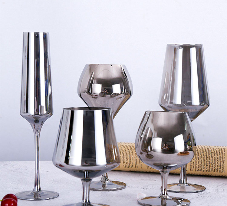 Galvanizado copa de vino negro gris ahumado copa de vino europeo banquete occidental champán cristal copa de vino