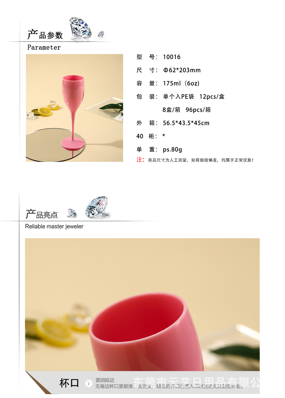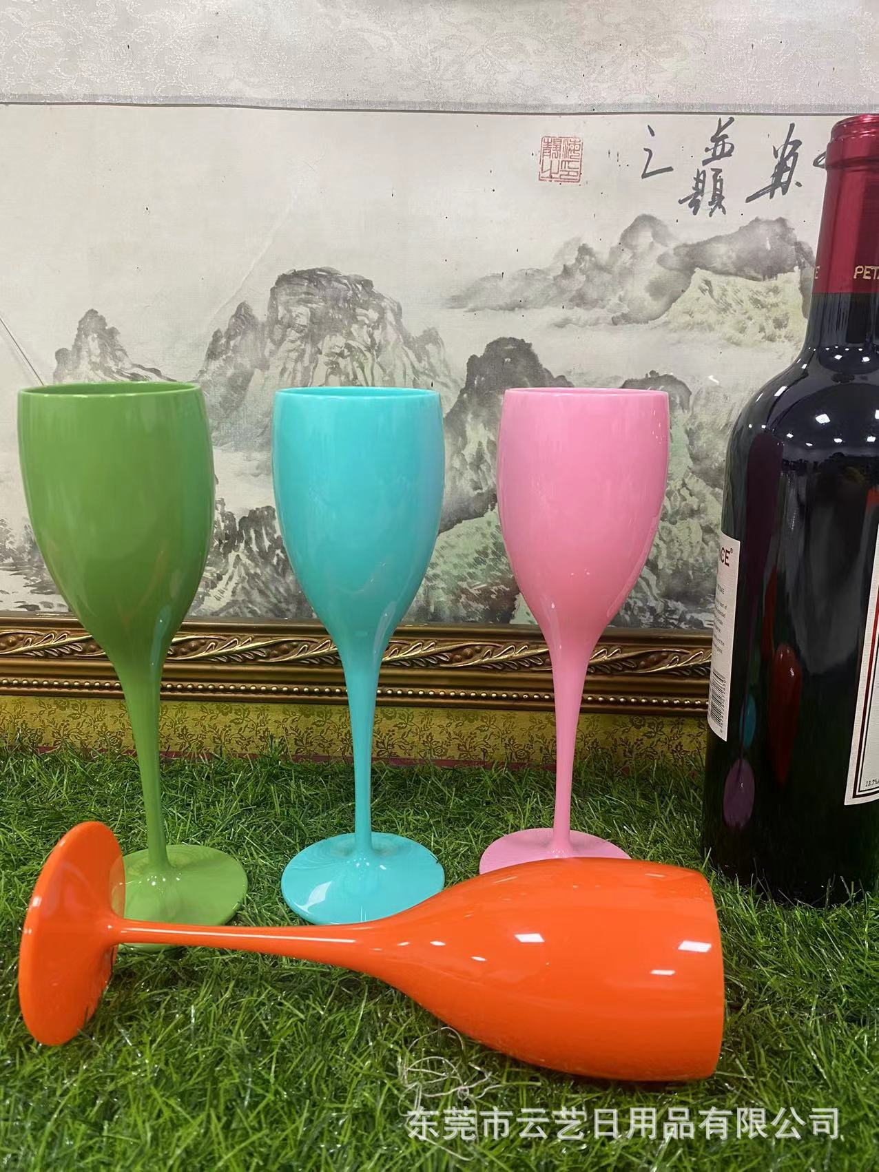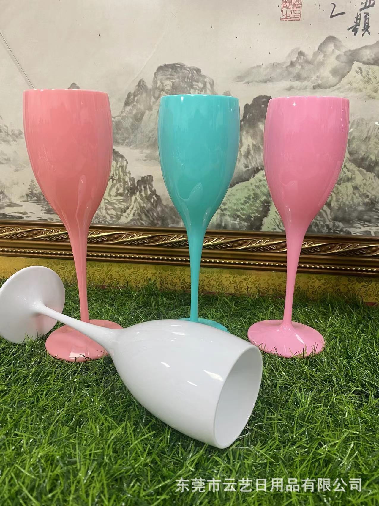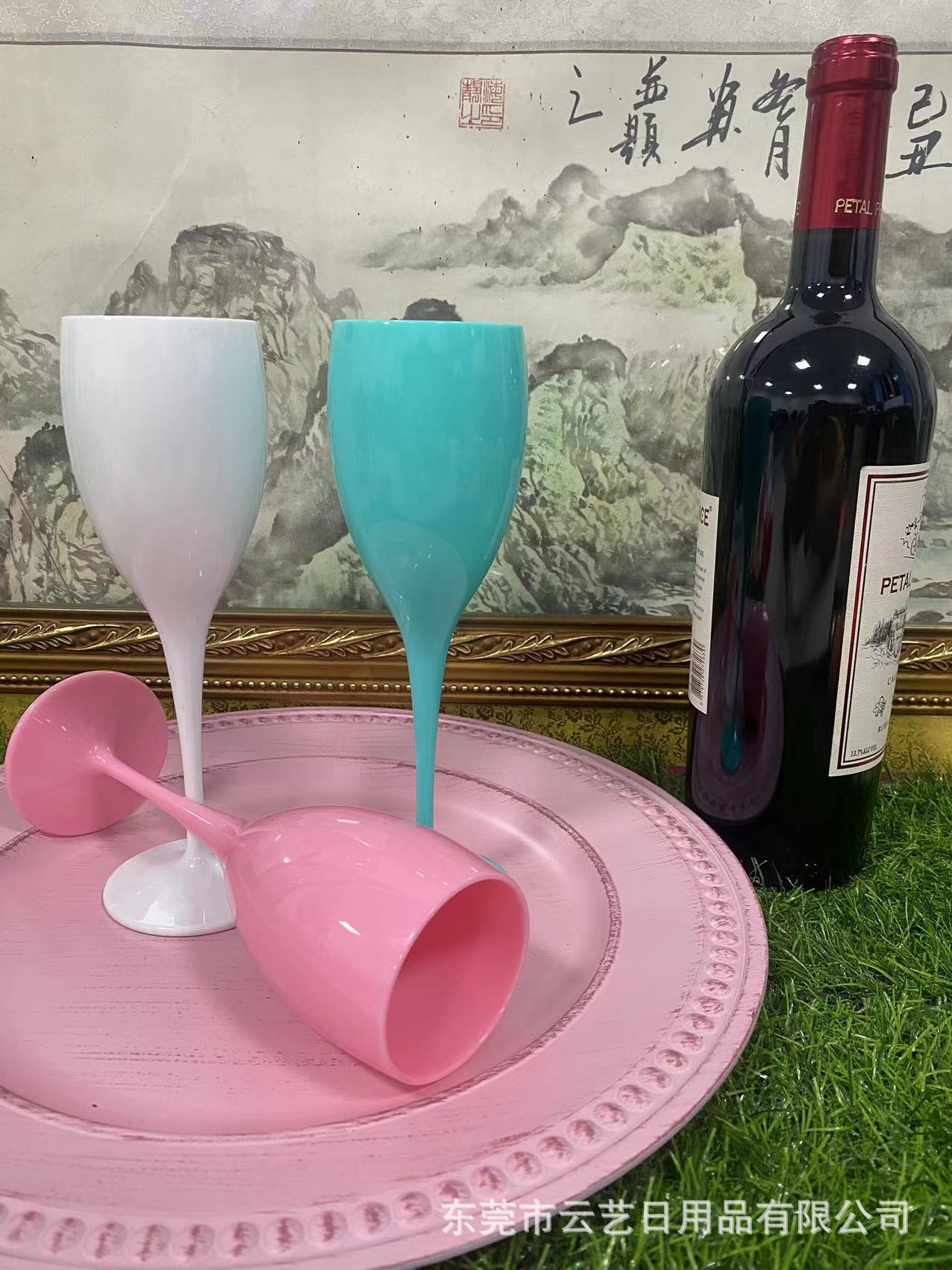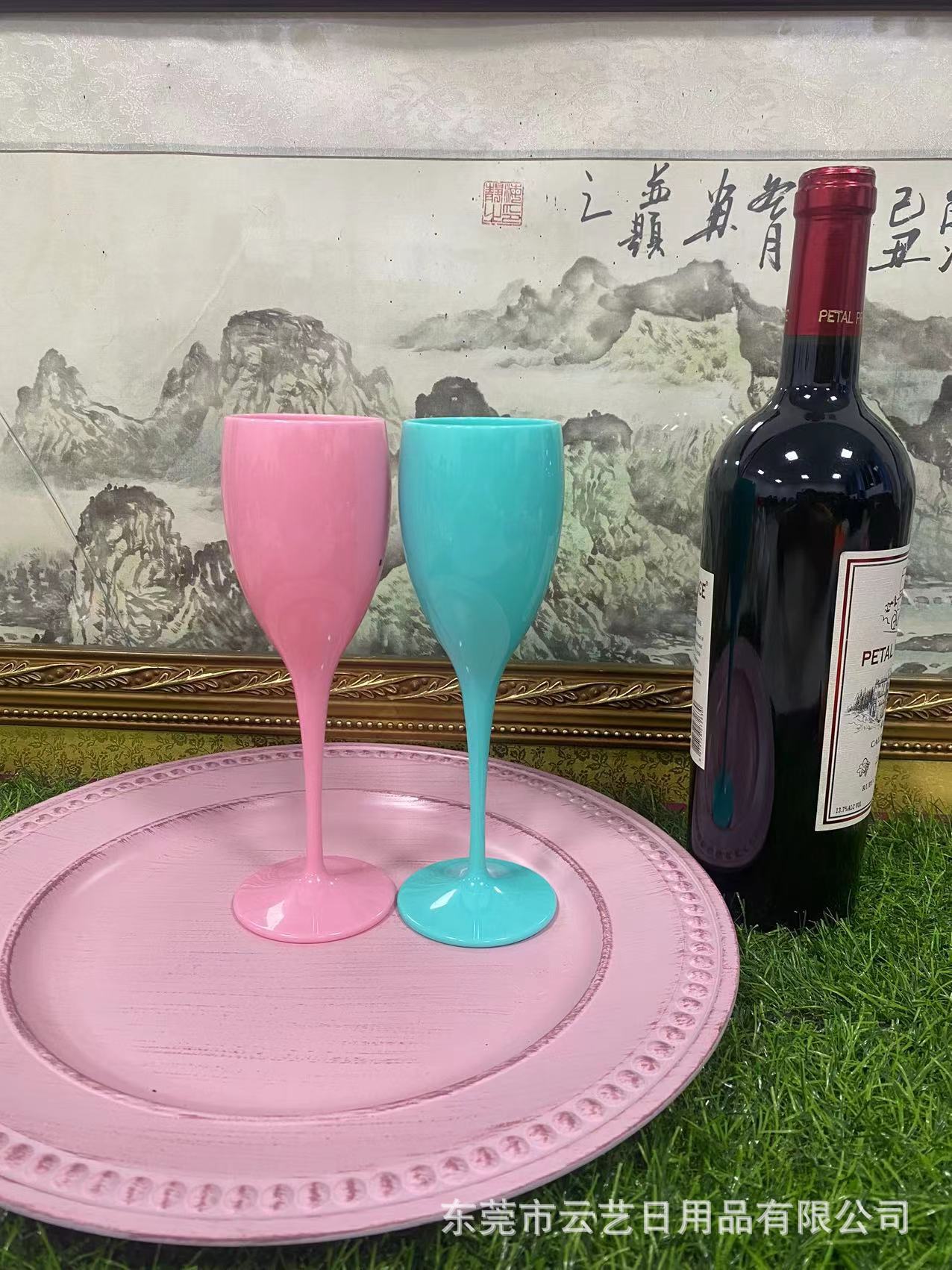 Copa de Champán Alta de Plástico PS, Estilo Europeo y Americano, 180 ml, Transparente, Color Simple, Cambia de Color, Suministro Directo de Fábrica