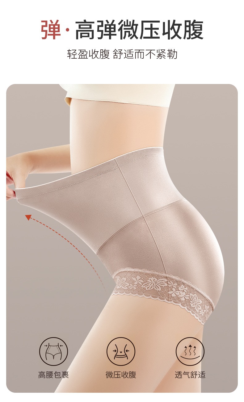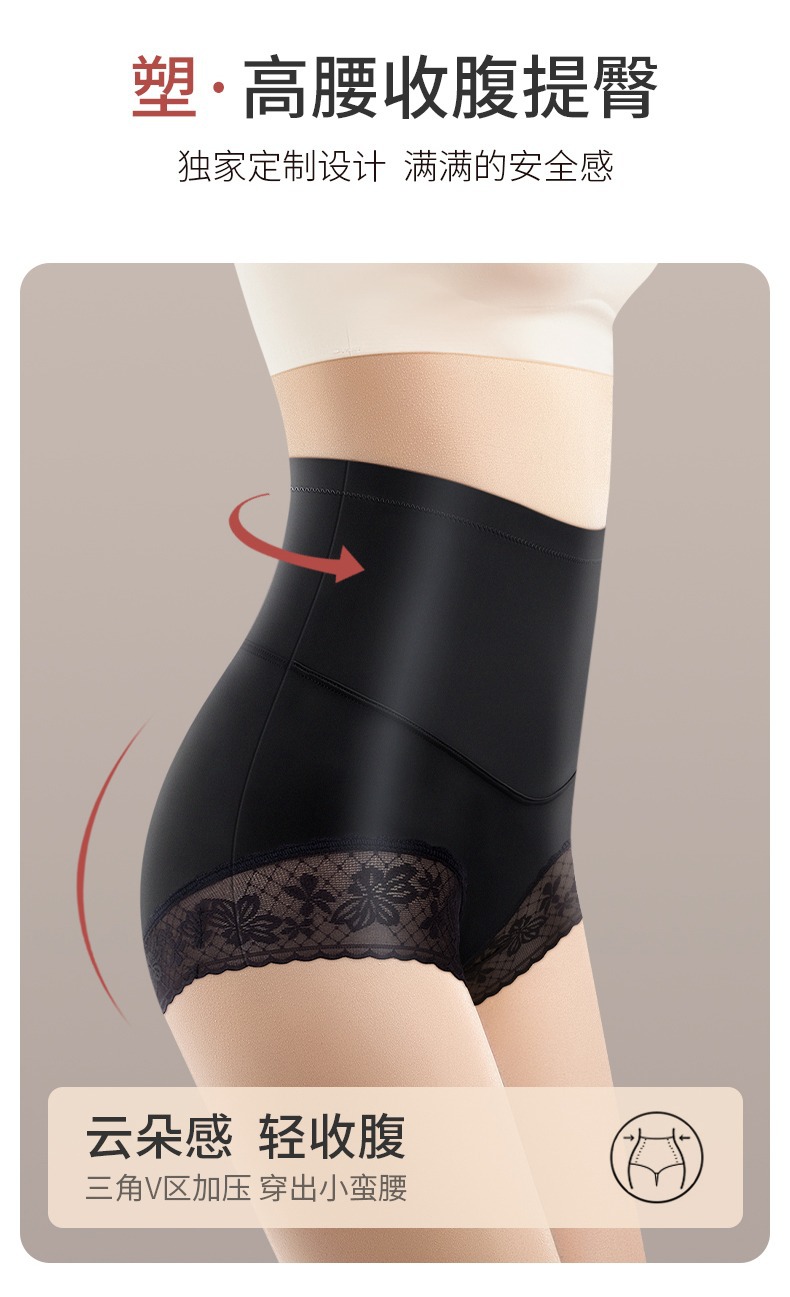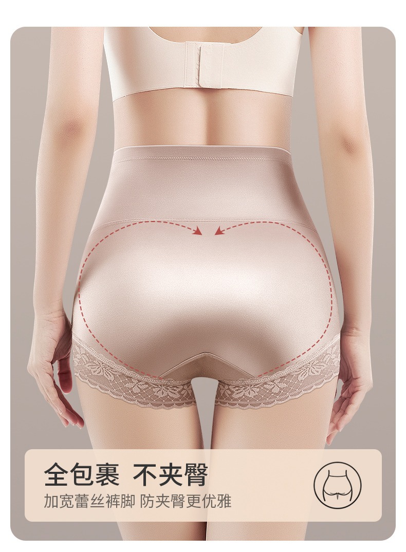 Pantalones de conformación de cuerpo de seda de hielo de satén de alta calidad Pantalones anchos de borde de encaje de mujer pierna anti-apriete cintura alta cintura seda cadera levantamiento vientre que forma Pantalones