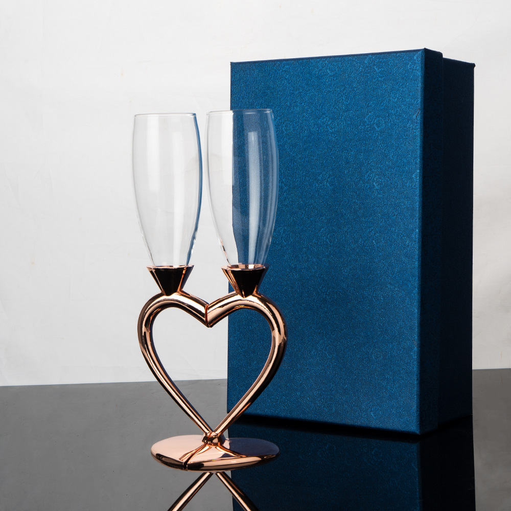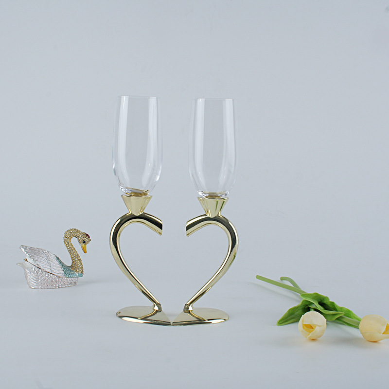 Corazón en forma de cristal Champagne traje pares de regalo de boda fiesta Copa cristal bar suministros Copa