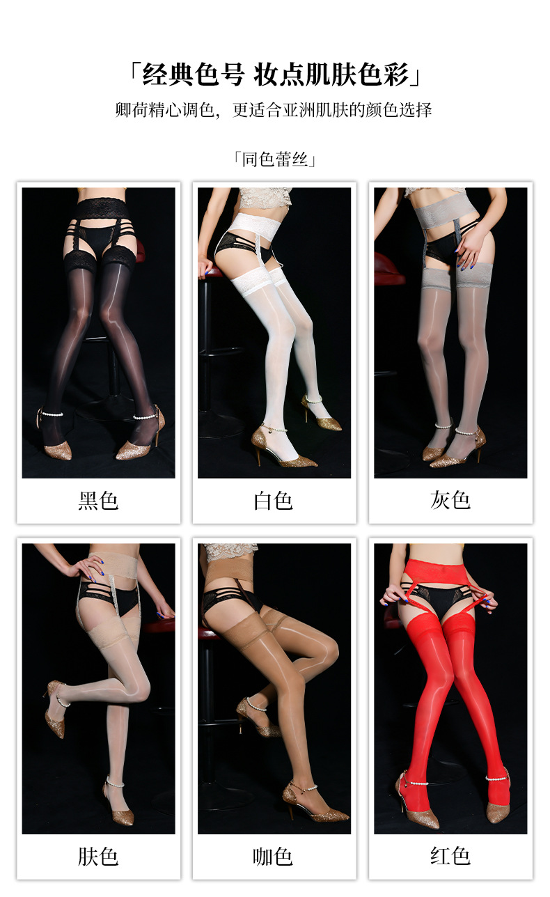 Calcetines Honda sexy de Qinghe medias de una sola pieza encaje 8D medias aceitosas de cuatro lados huecos sobre la rodilla Calcetines para mujeres