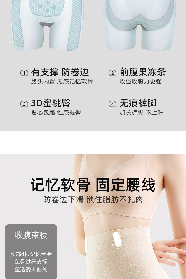 Vivir popular pequeño copo de nieve jalea tira de plástico cintura vientre que forma los pantalones de alta elástica transpirable malla de tela cadera Levantamiento de cadera que forma los pantalones