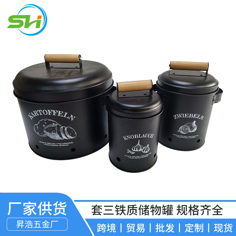 Amazon tarro de almacenamiento de hierro tarro de té de metal al por mayor cocina tarro de almacenamiento de hierro tarro de tres piezas de café sellado