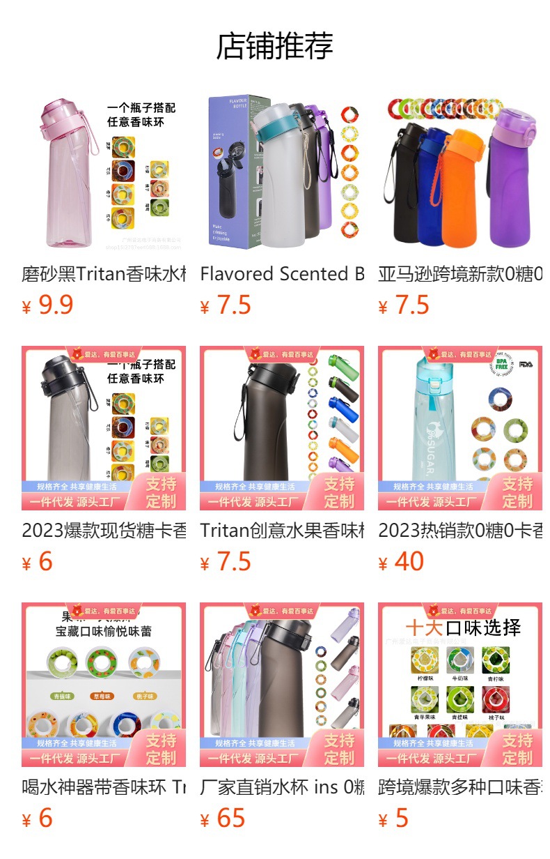 2023 venta caliente 0 azúcar 0 tarjeta sabor taza fruta diversión anillo tritan botella de agua deportes taza de agua beber artefacto