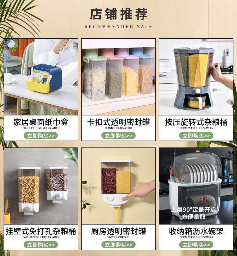 Grano de estilo japonés Snap-on transparente sellado tarro de plástico de alimentos con tapa comida para perros taza de medición a prueba de humedad cubo sellado