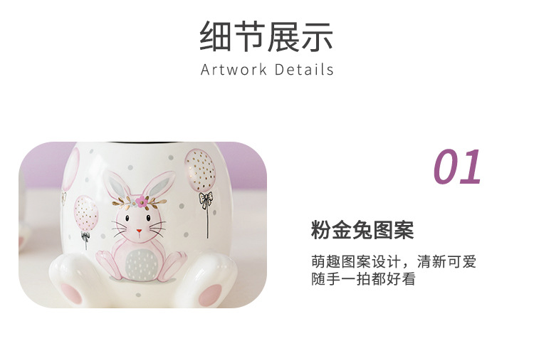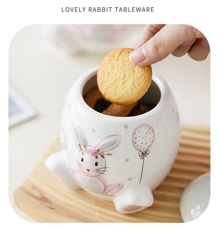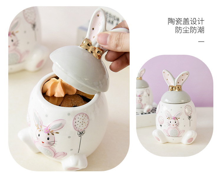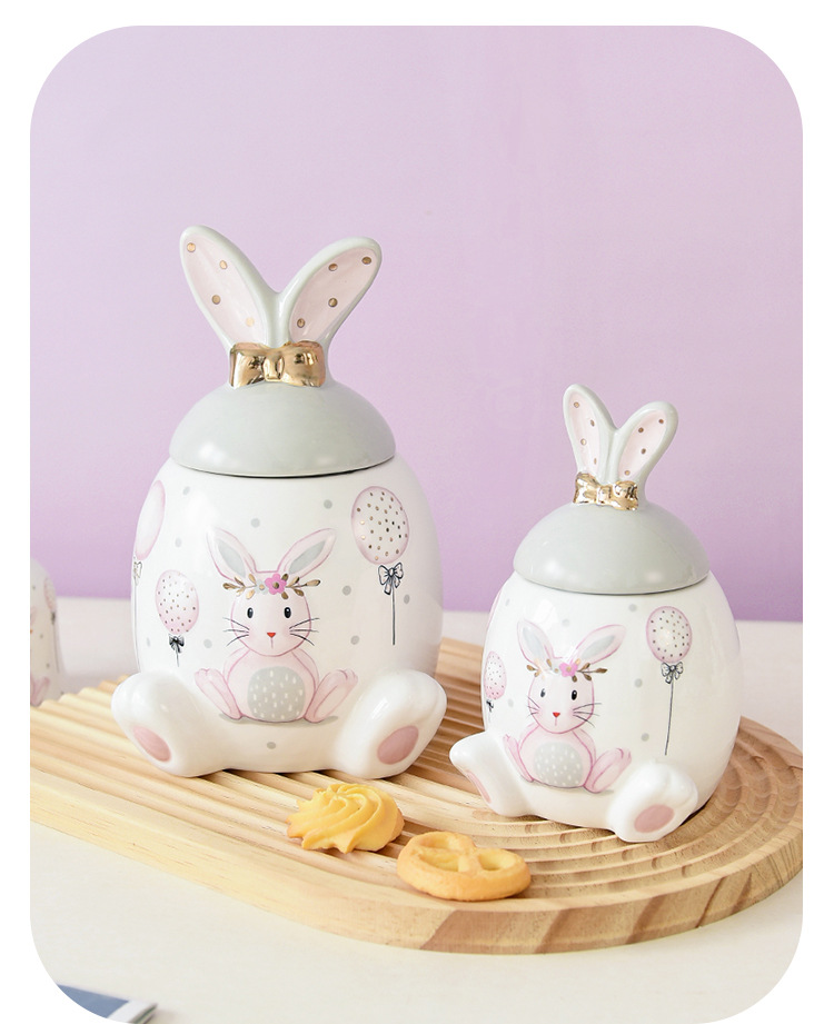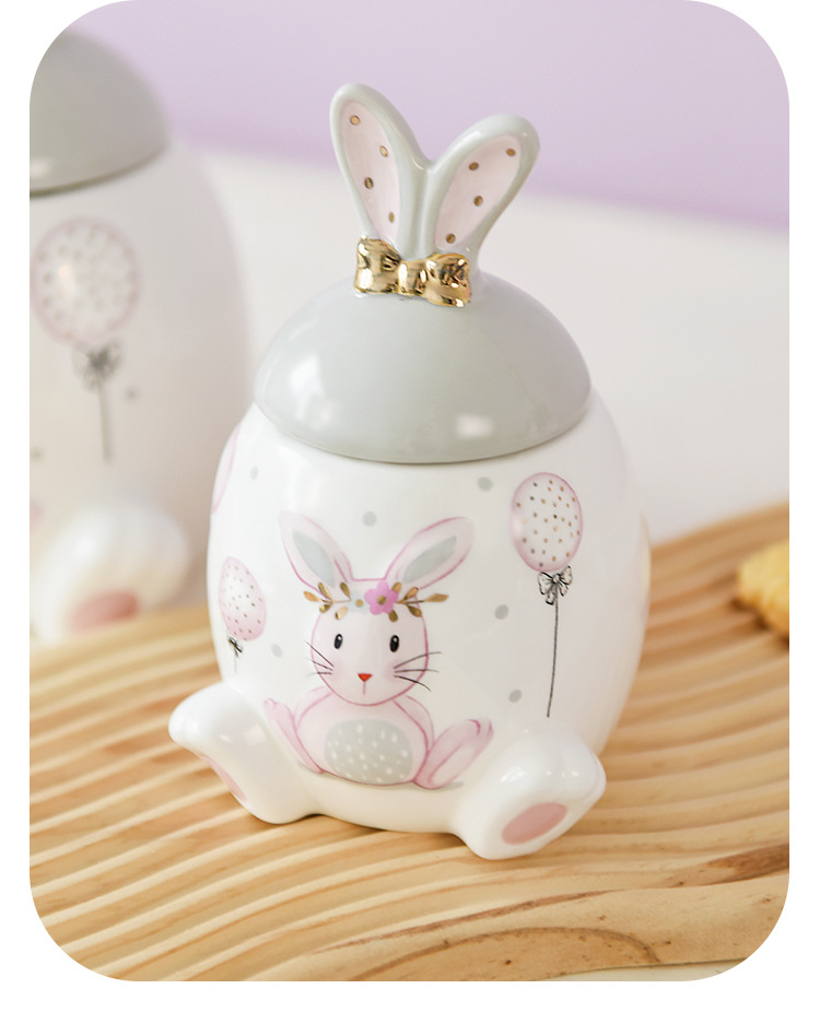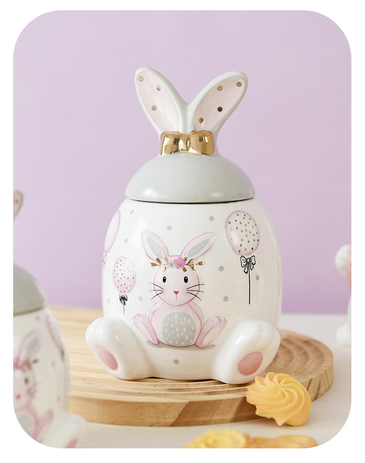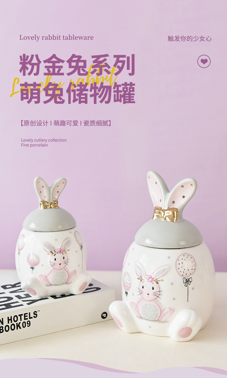 Conejo de oro rosa serie tarro de almacenamiento de gran capacidad tarro de almacenamiento de tamaño pequeño creativo de dibujos animados modelado de alivio ventas directas de fábrica