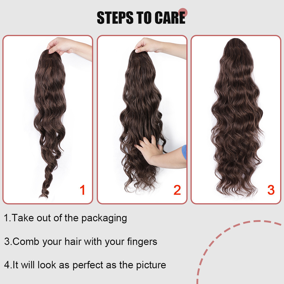 Venta al por mayor europea y americana transfronteriza peluca cordón fibra química Cola de Caballo largo rizado onda grande alta temperatura seda ponytails
