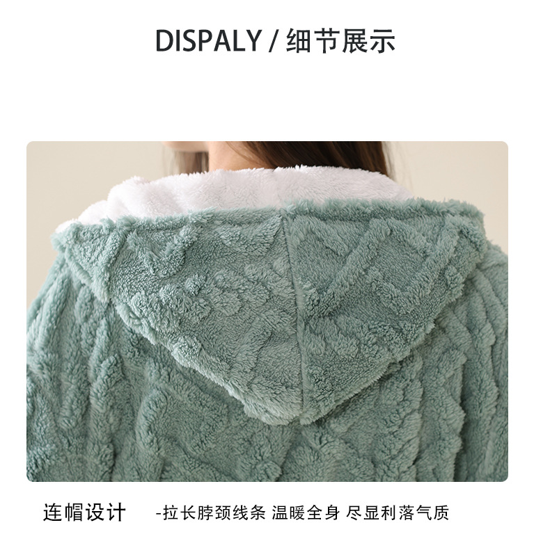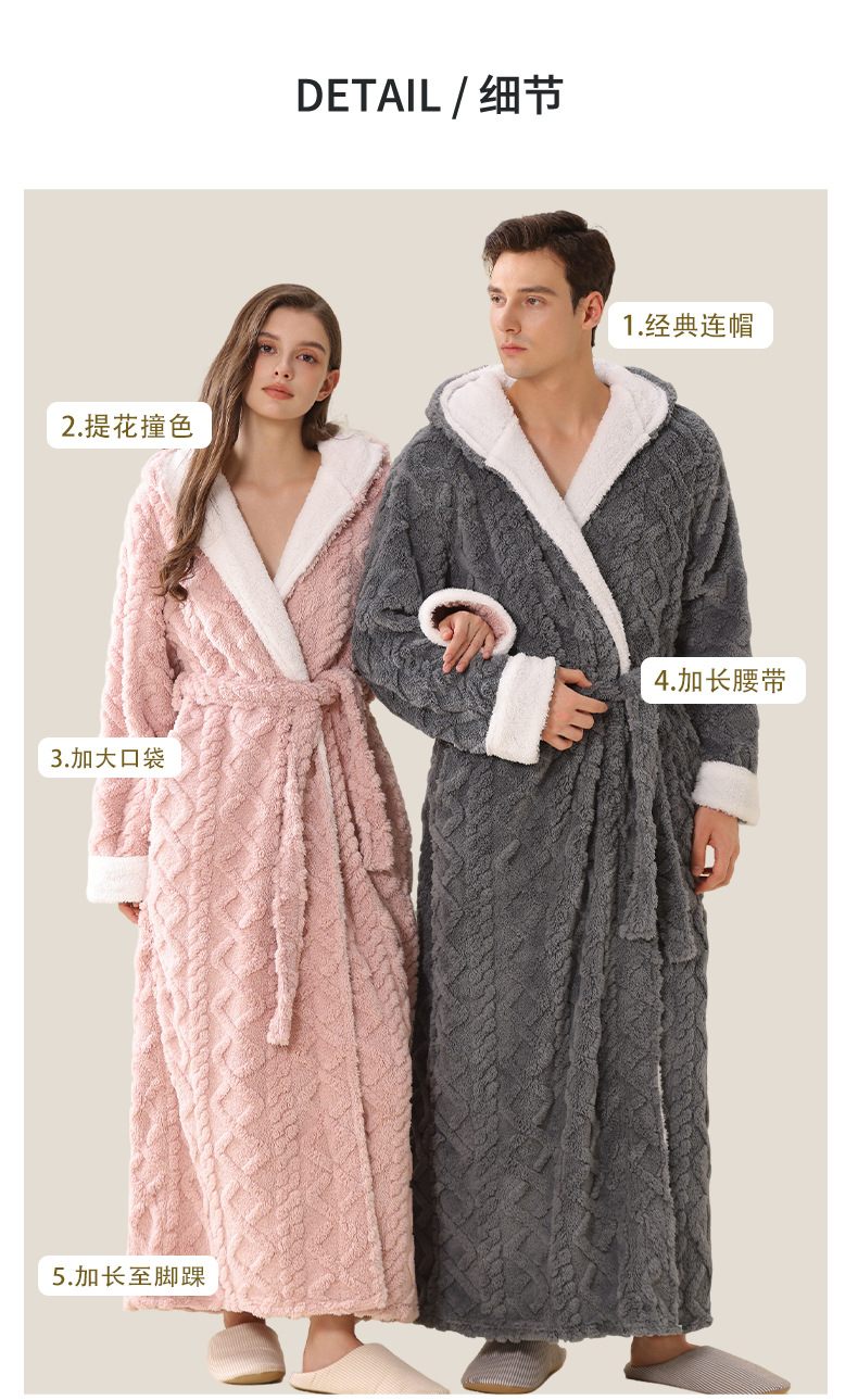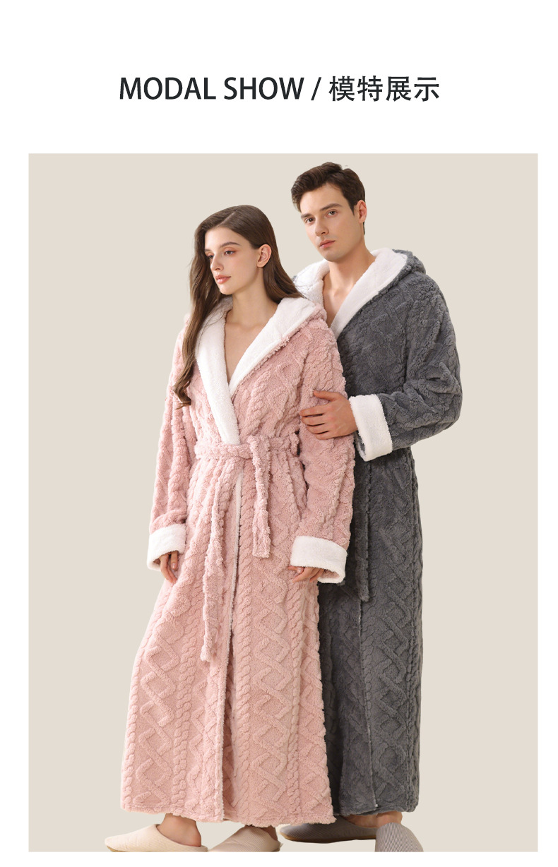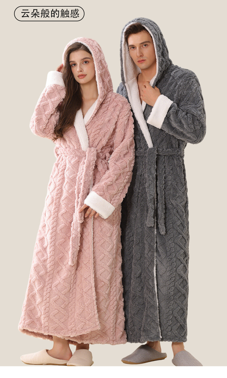 Camisón de franela con capucha extendida, totalmente gestionado por Temu, para mujer, pijamas y batas de baño de terciopelo coral para parejas, engrosados y cálidos.