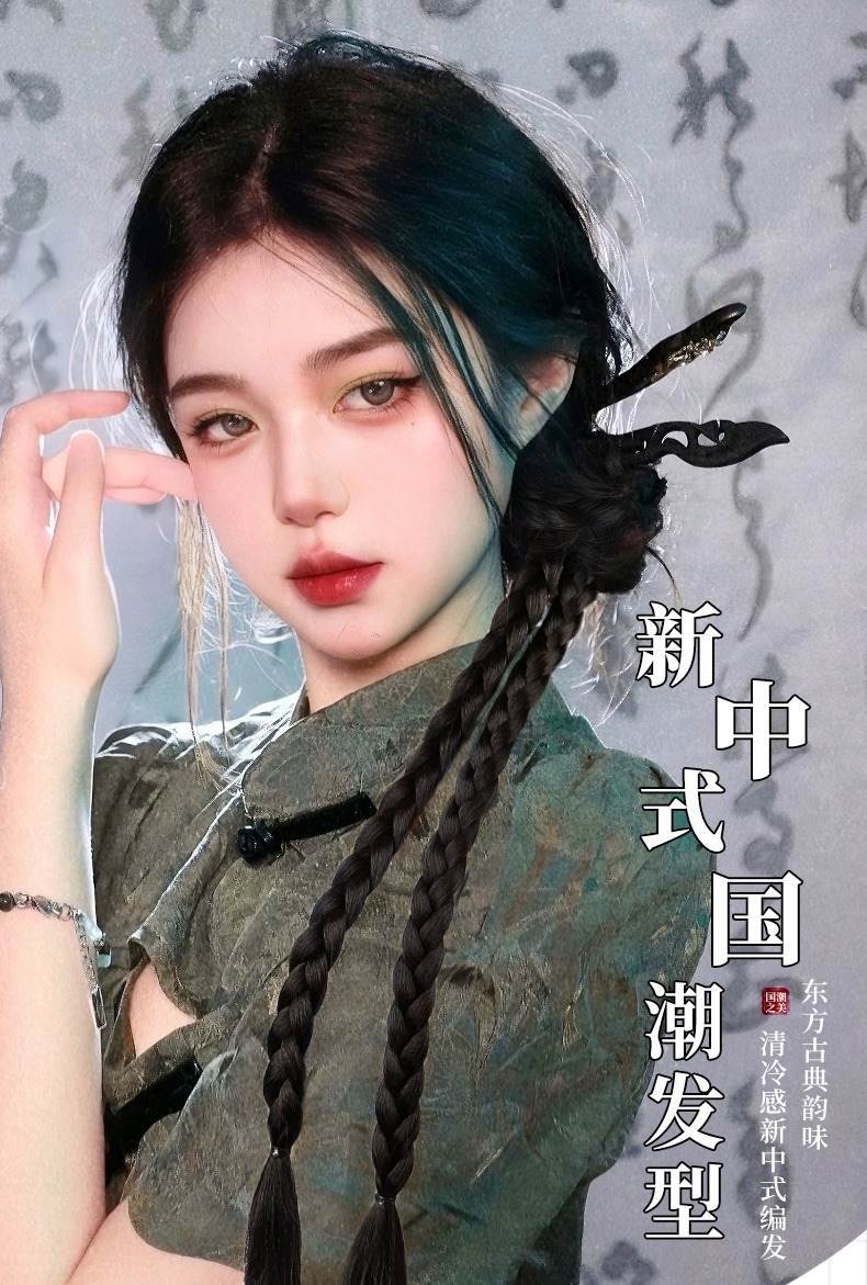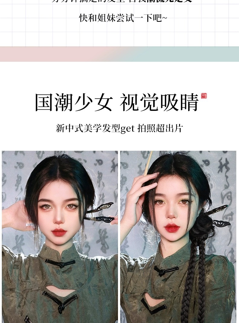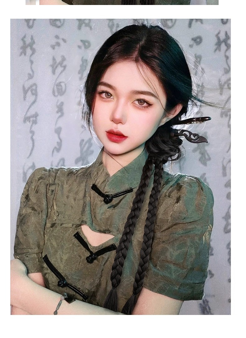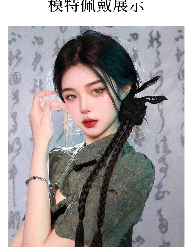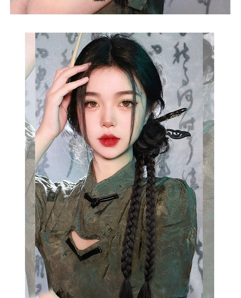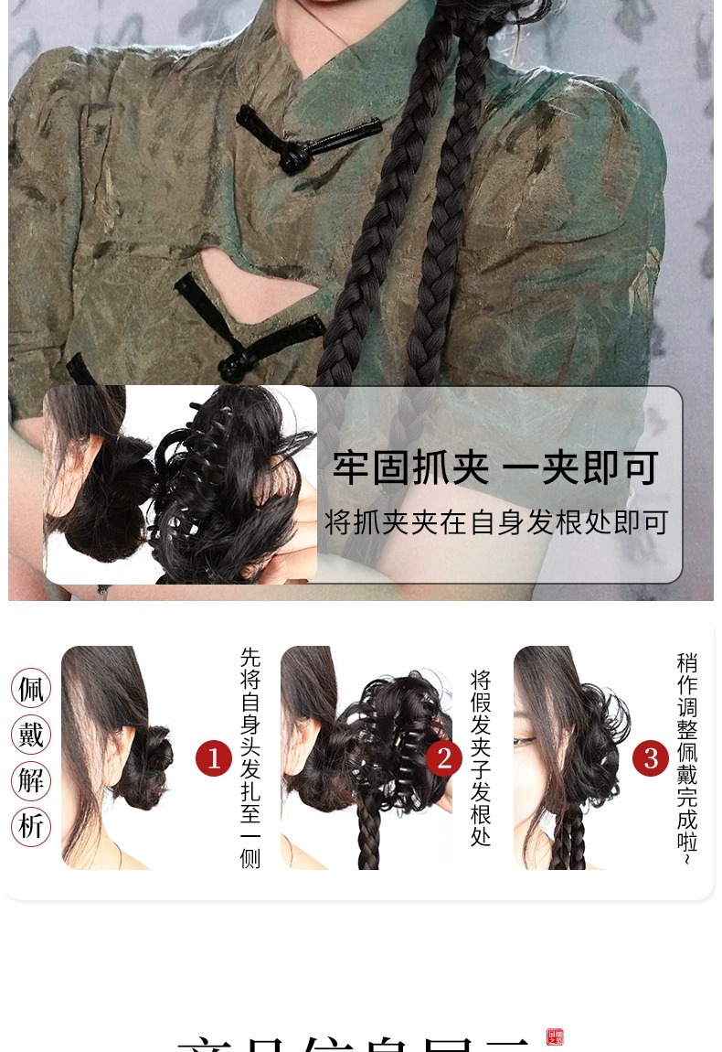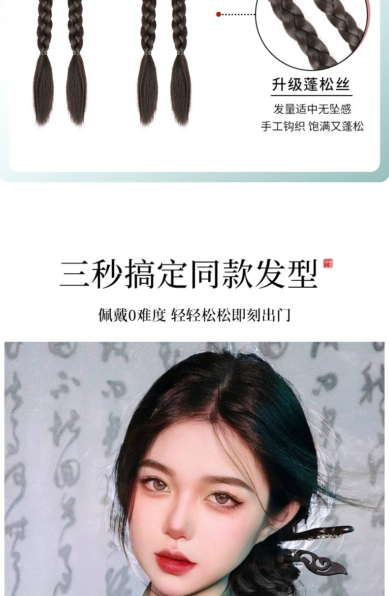 Peluca Cola de Caballo trenza femenina Nuevo estilo chino pelo trenzado Hanfu estilo antiguo clip de pelo bolsa de pelo giro trenza larga trenza de boxeo peluca