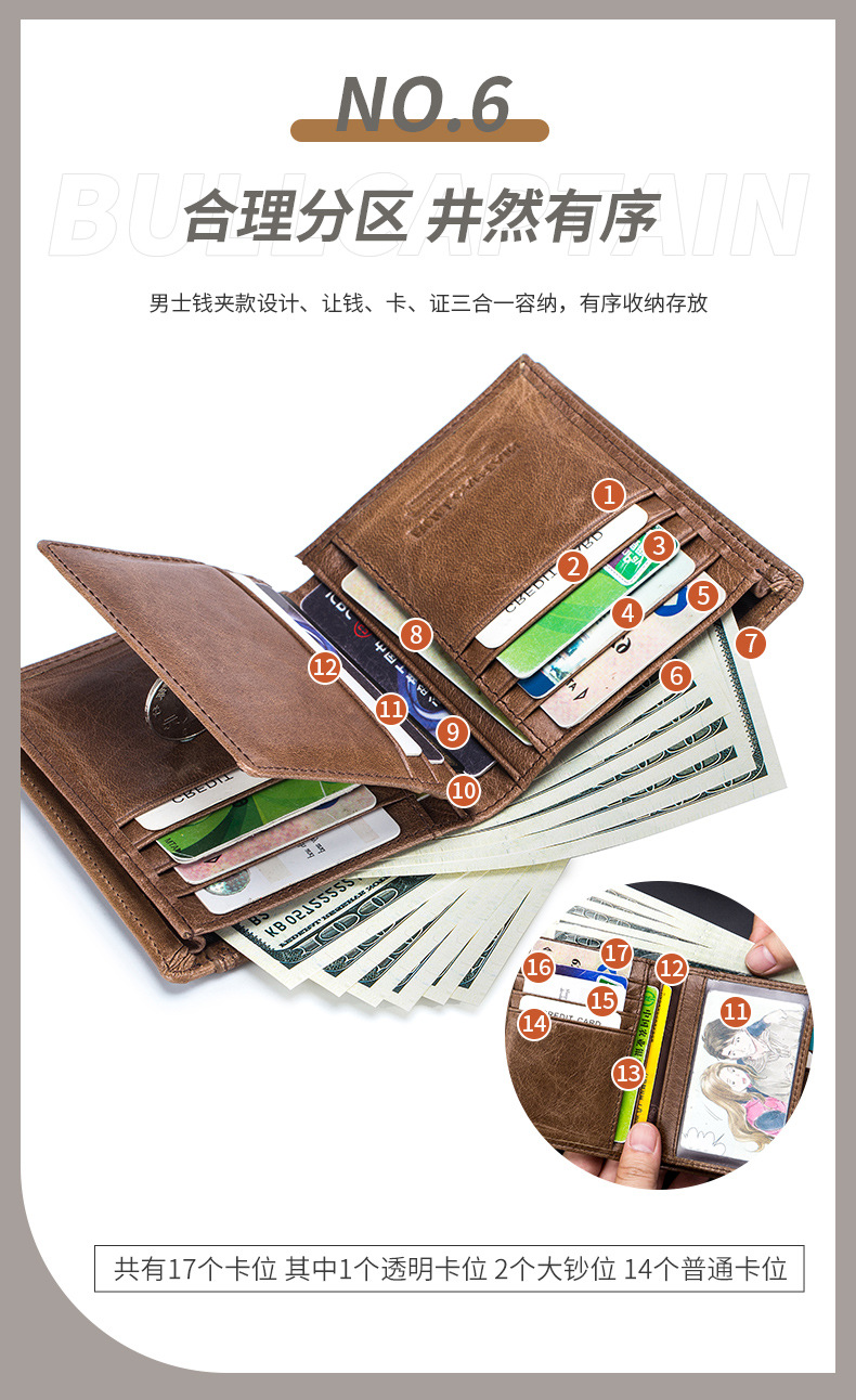 Capitán vaca cuero fábrica suministro primera capa de cuero masculino multi-función pequeña Licencia de Conducir bolsa de tarjeta de foto de la licencia de conducir