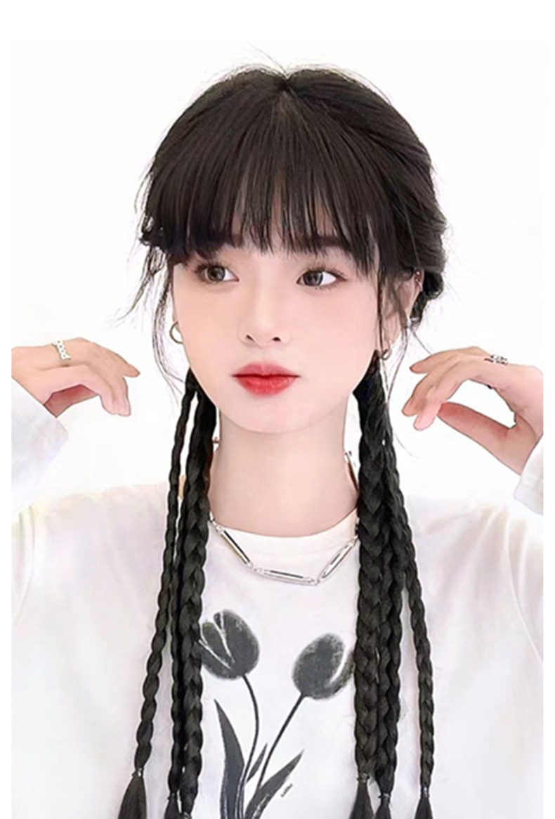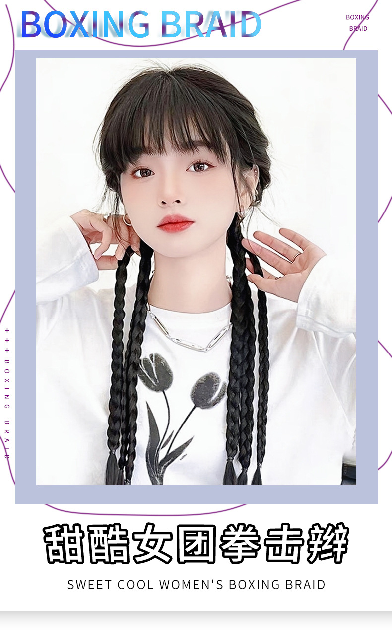 Peluca trenza dulce fresco personalidad trenza de boxeo hecho a mano Espina de pescado trenza de giro natural fibra química trenza sucia Cola de Caballo falsa hembra
