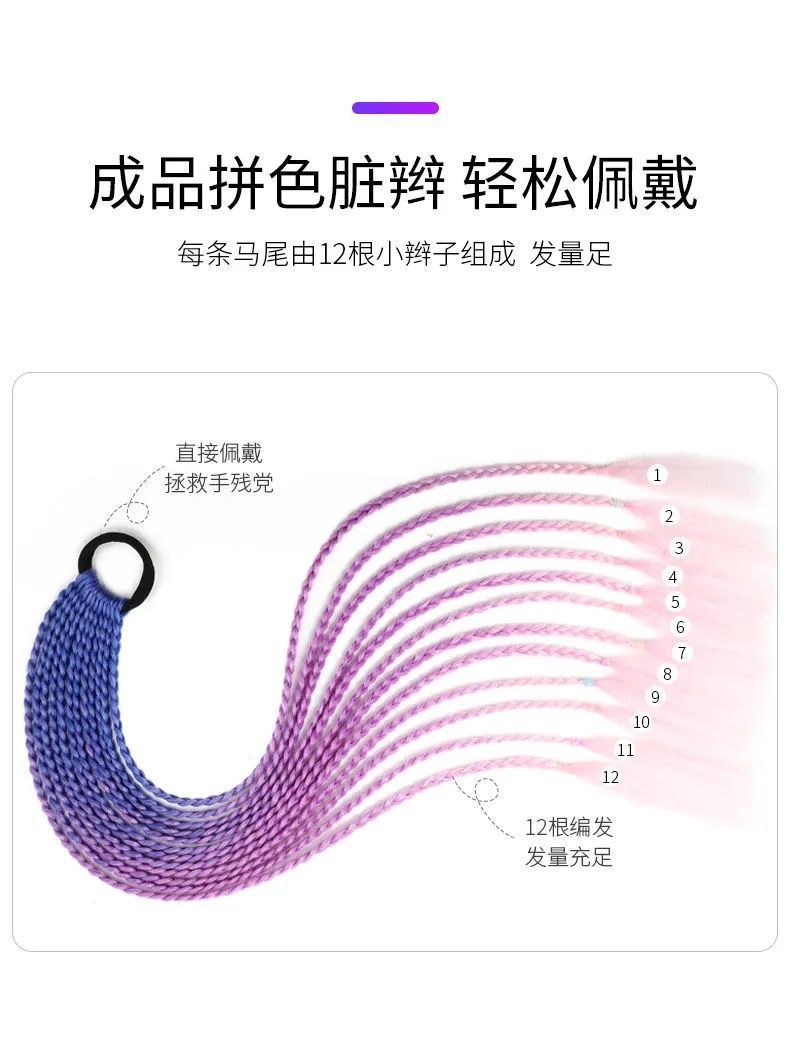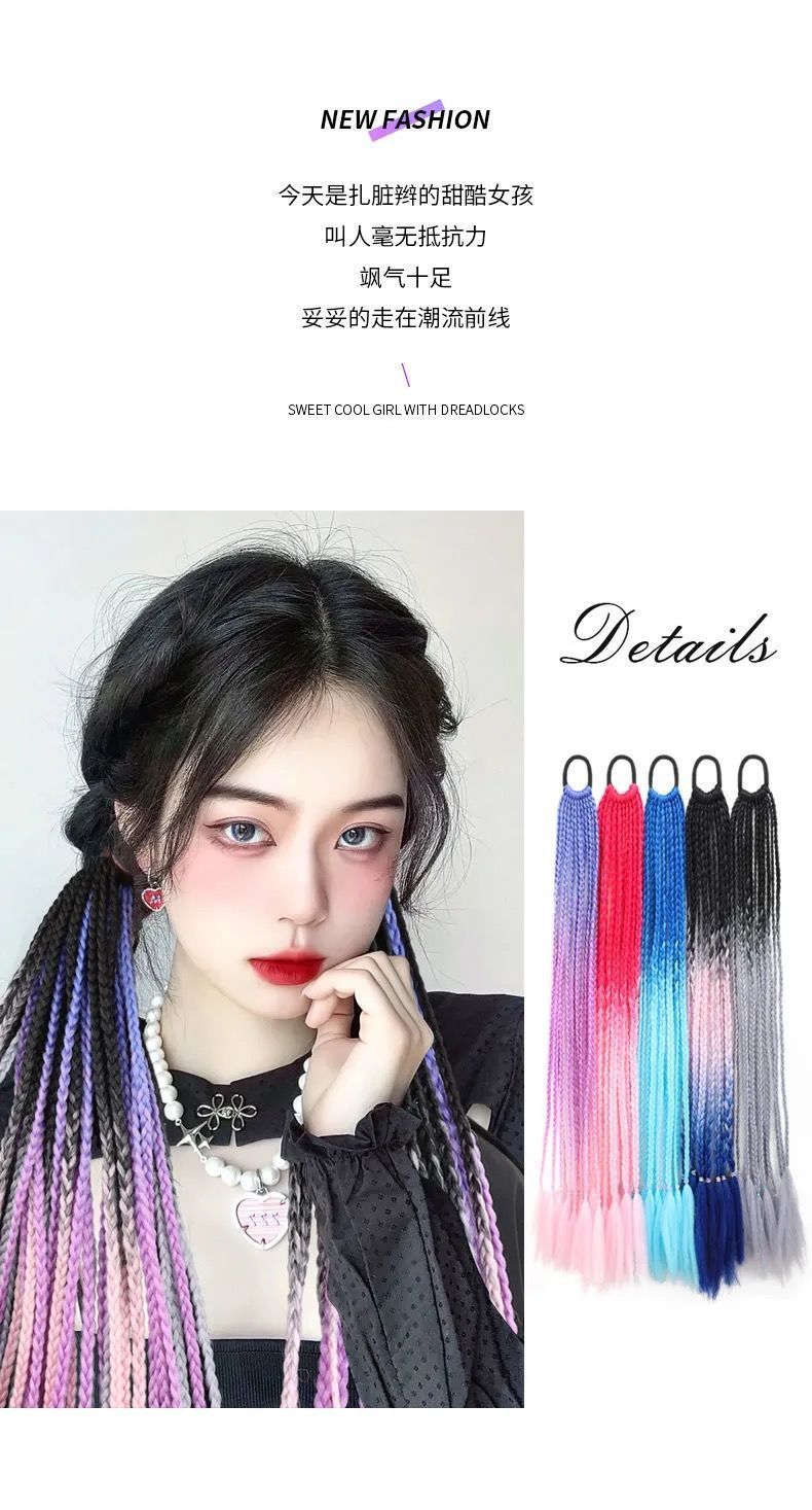 Fábrica al por mayor color trenza peluca hembra hip hop gradiente teñido trenza color de trenza sucia trenza cola de caballo