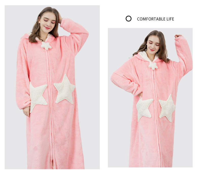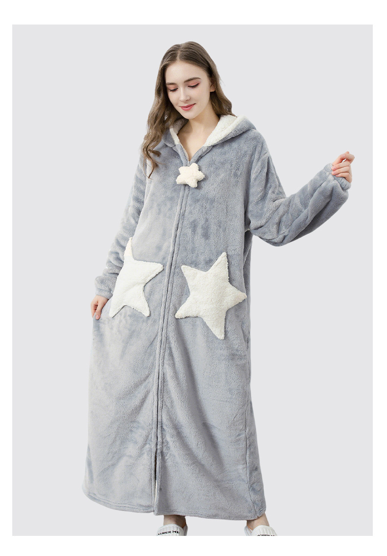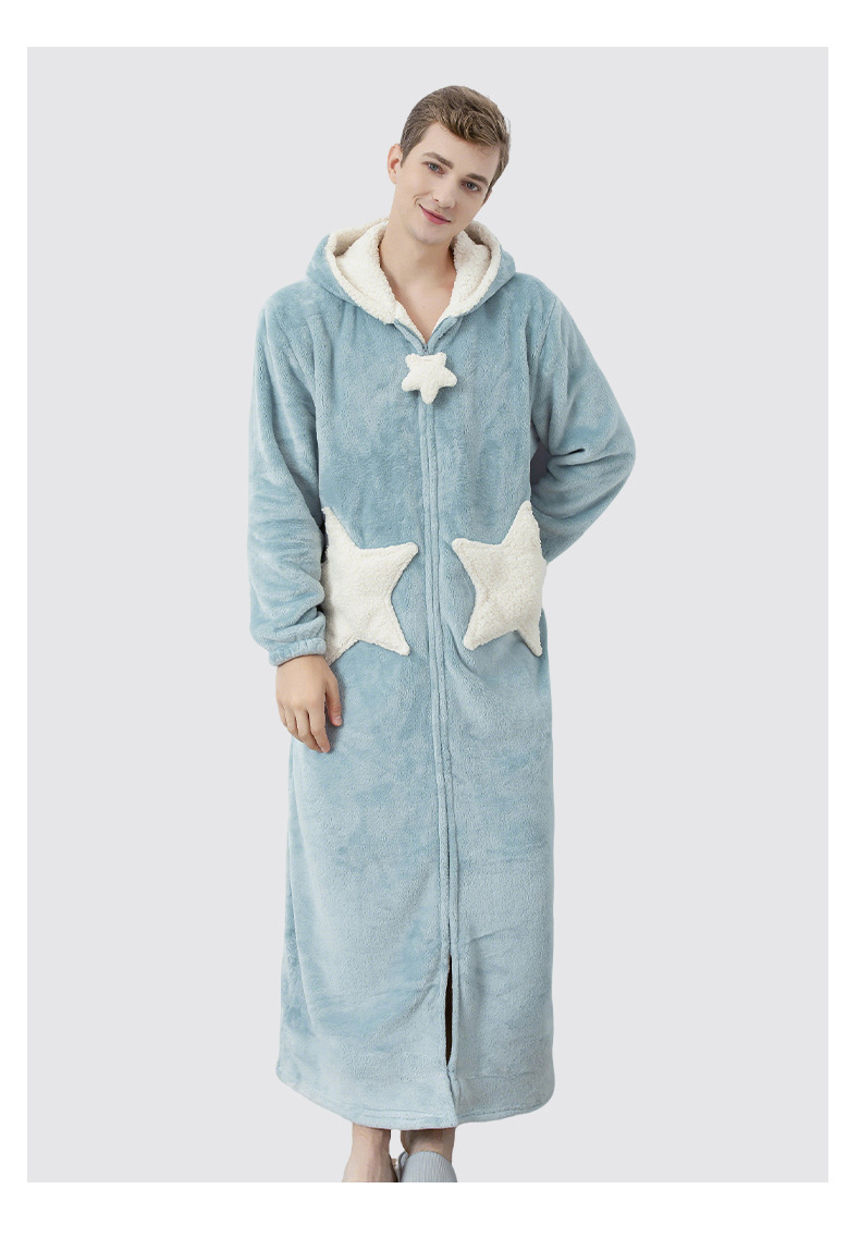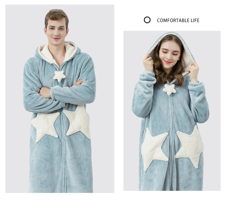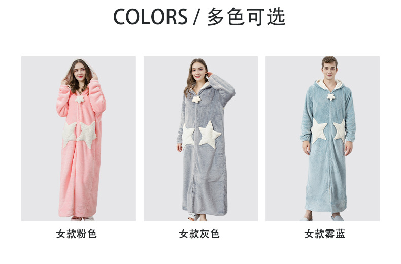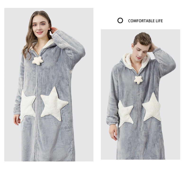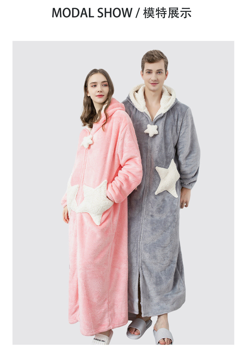 Más tamaño camisón de la estrella de las mujeres coral fleece engrosado pijamas hombres otoño e invierno largo transfronterizo exclusivo para fábrica al por mayor