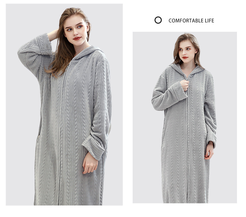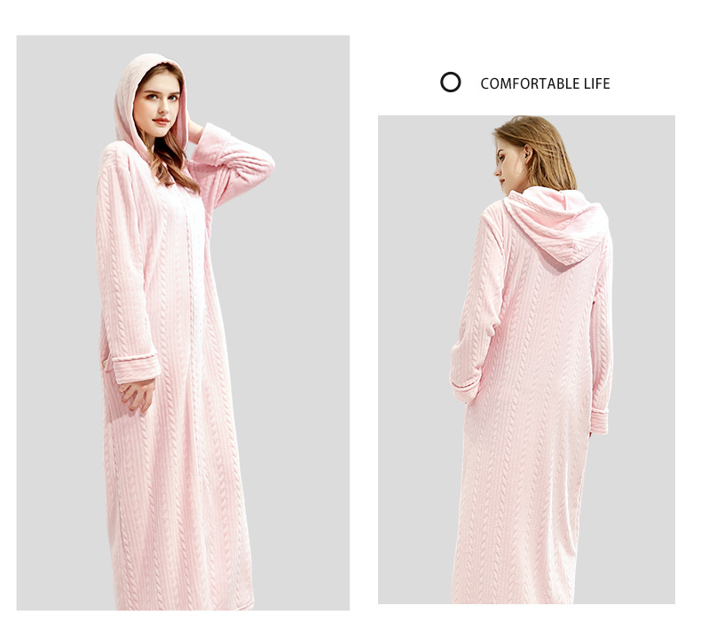 Camisón de franela para mujer invierno engrosado coral fleece manga larga más tamaño transfronterizo exclusivo fábrica al por mayor más tamaño Camisón con capucha