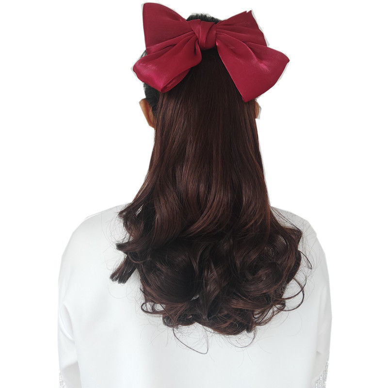Nueva Cola de Caballo peluca femenina arco largo rizado pelo insertar peine natural rollo Internet celebridad agua ondulación agarre Correa cola