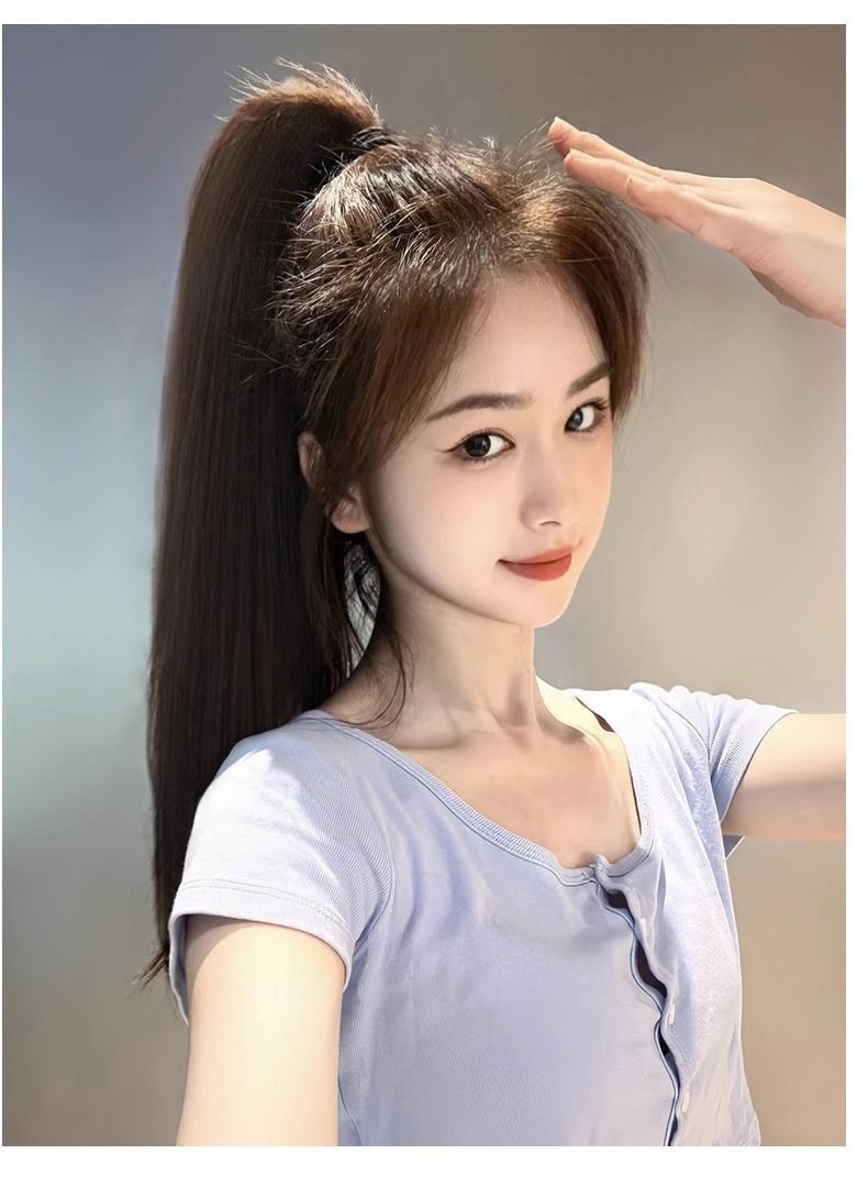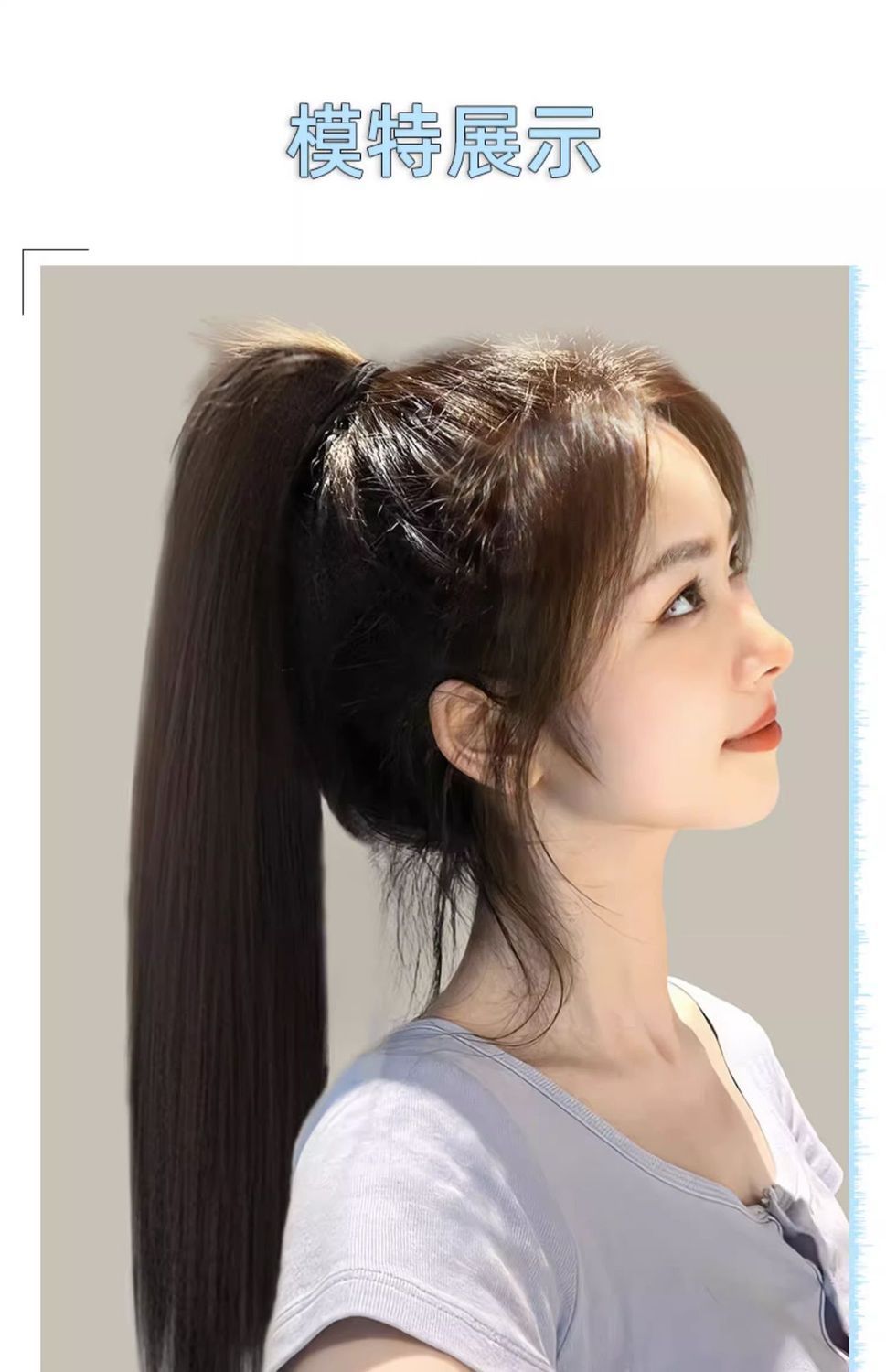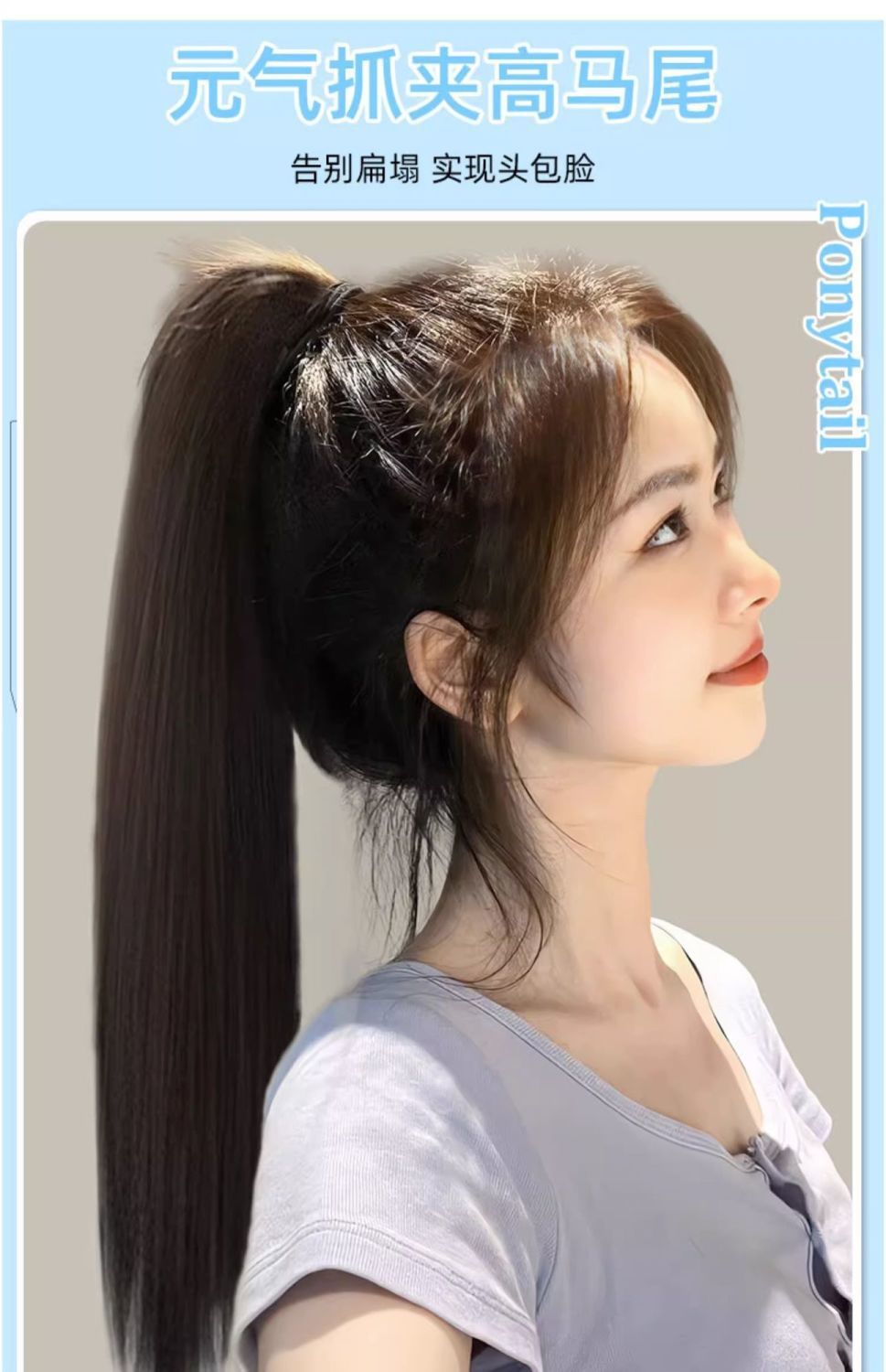 Peluca, cola de caballo alta, celebridad de Internet, cabello largo y liso, peluca natural, cola de caballo recta femenina, correa, peluca de cola de caballo recta