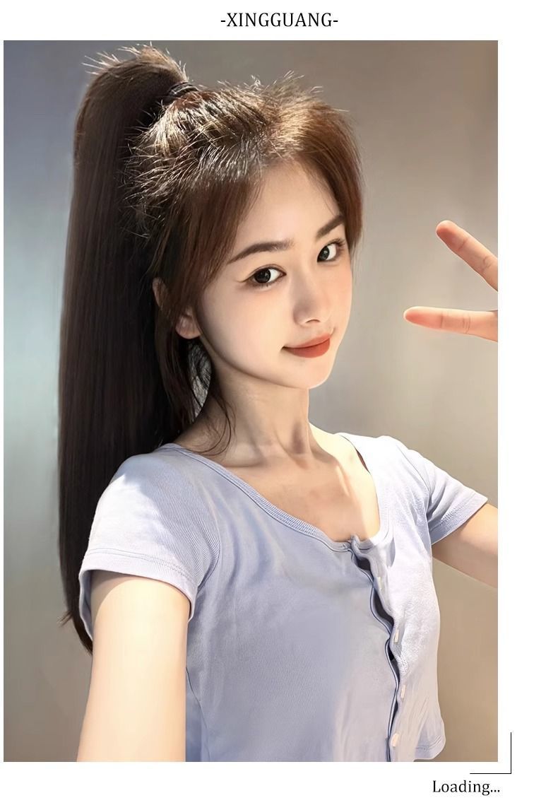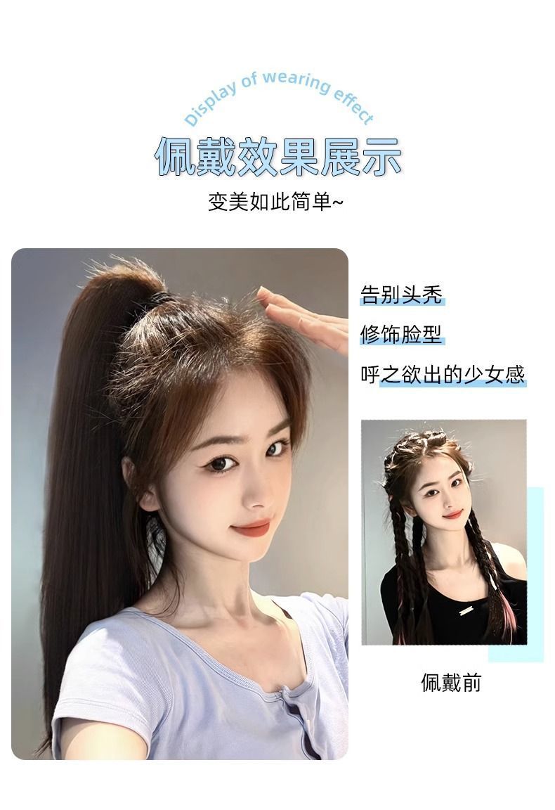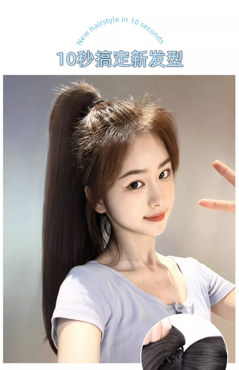 Peluca, cola de caballo alta, celebridad de Internet, cabello largo y liso, peluca natural, cola de caballo recta femenina, correa, peluca de cola de caballo recta