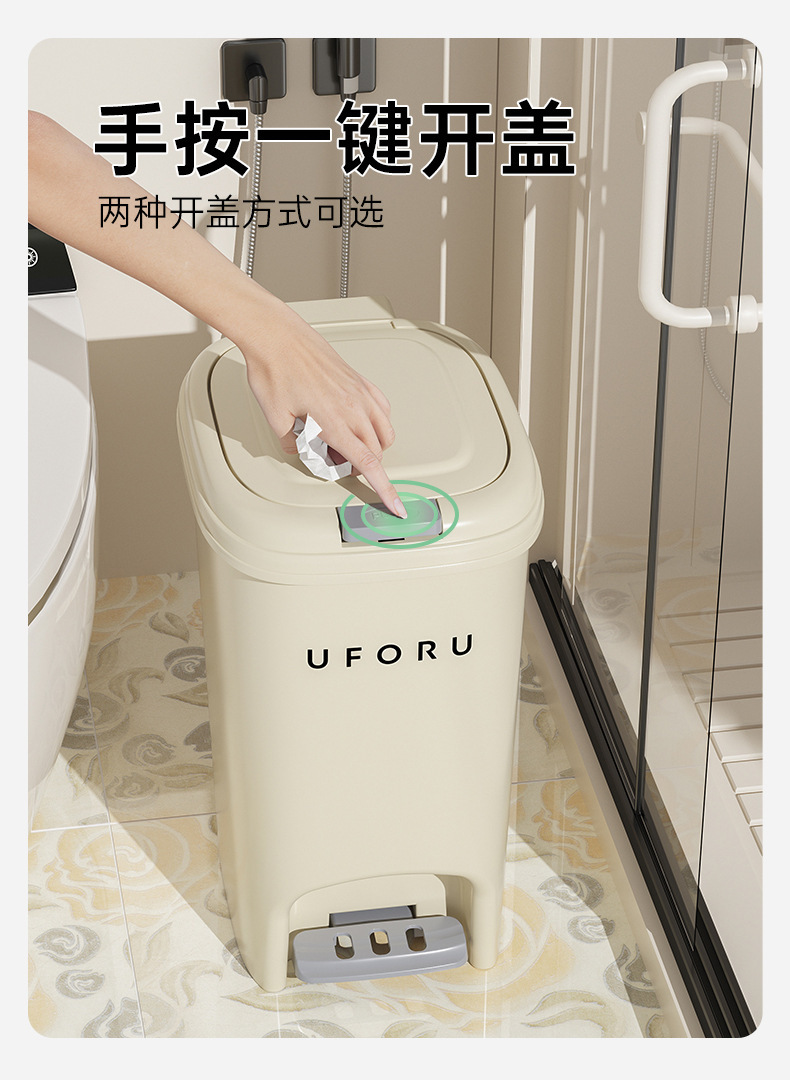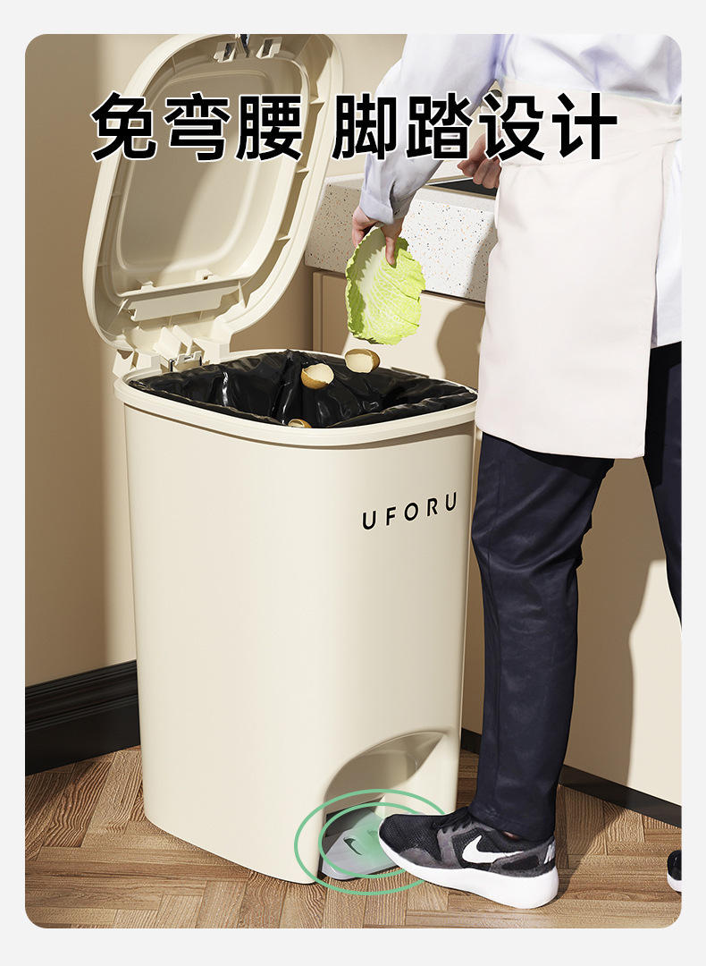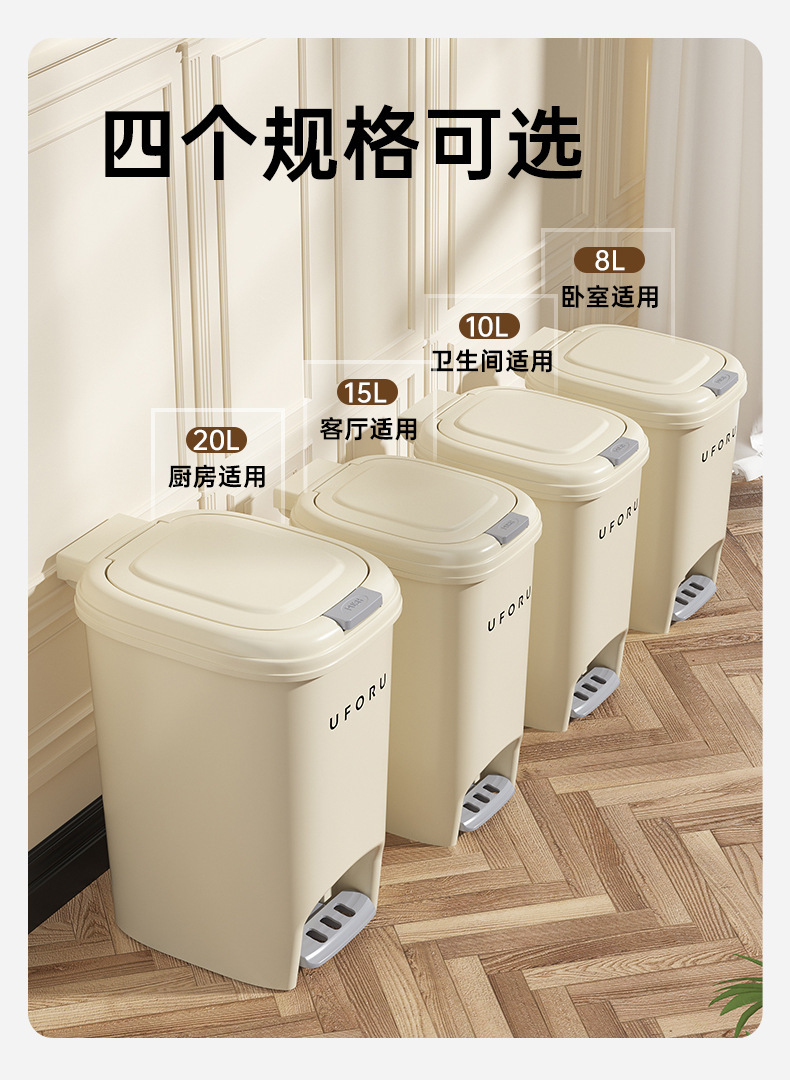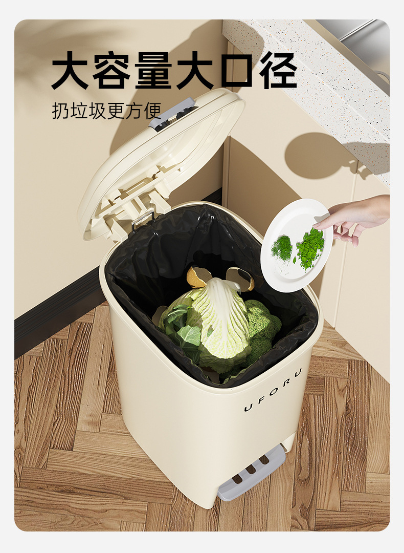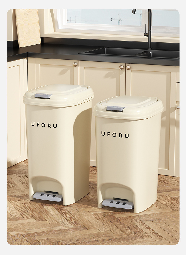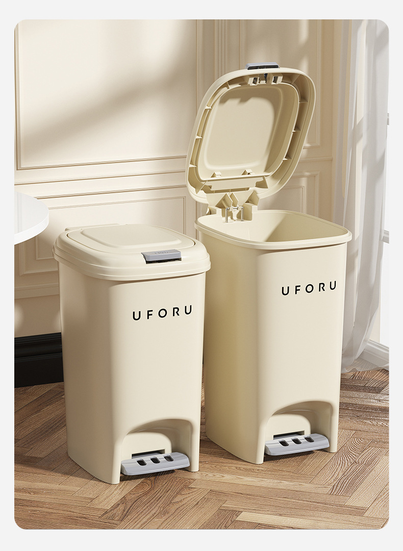 Cocina del hogar bote de basura baño Tipo de pedal de gran capacidad sala de estar multifuncional estilo crema cesta de basura con tapa