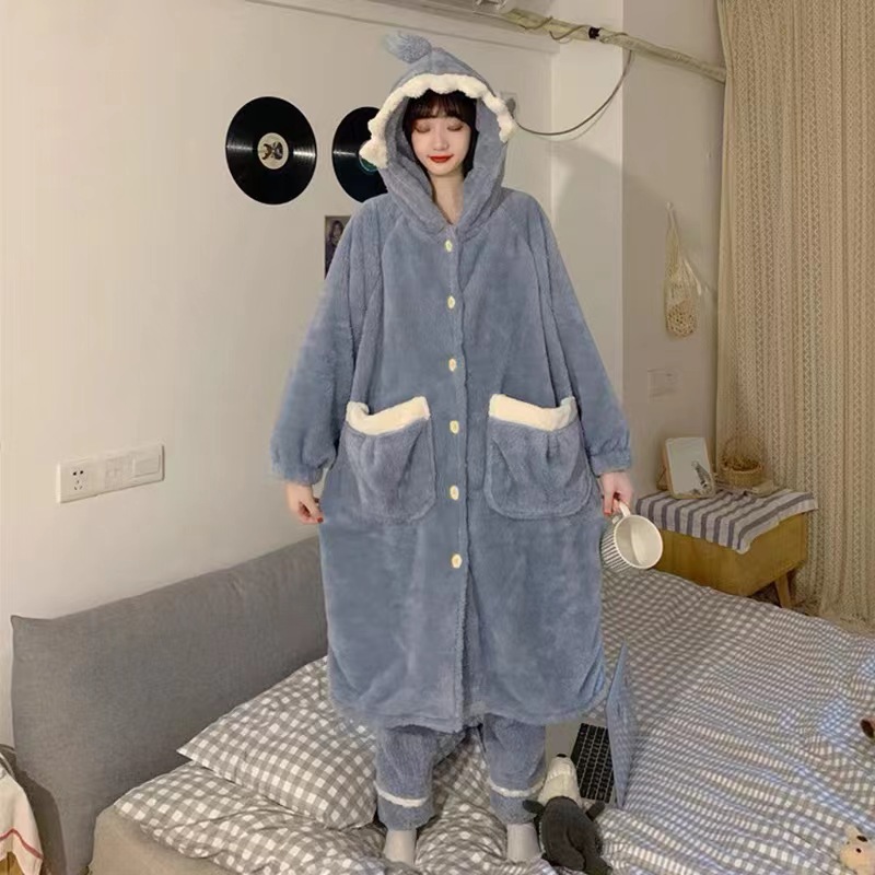 Bata de felpa coralina con capucha, diseño de personajes animados, pijama grueso y cálido para invierno