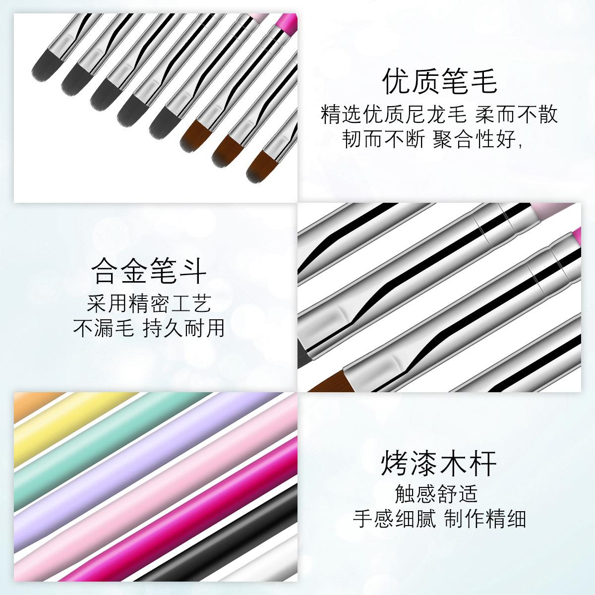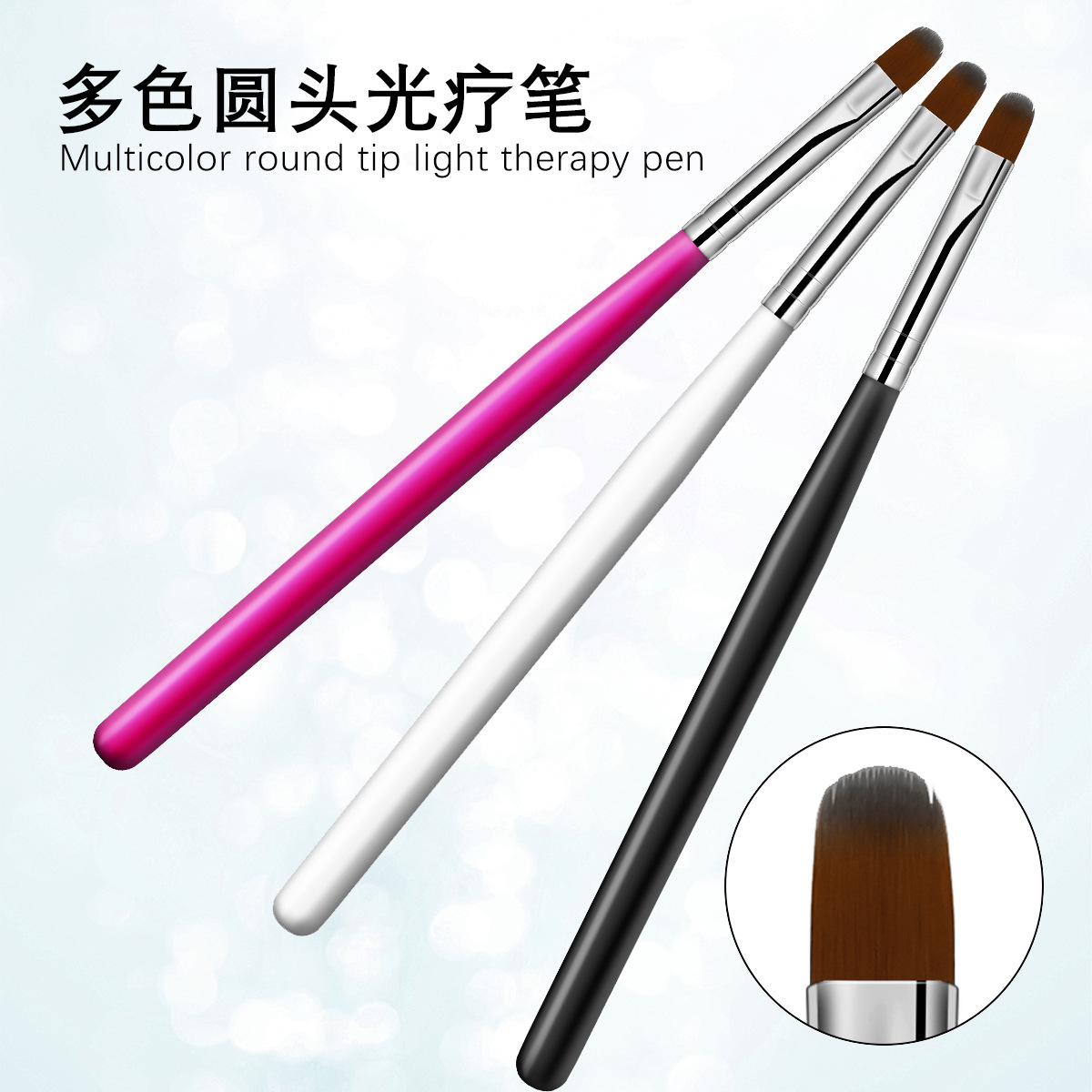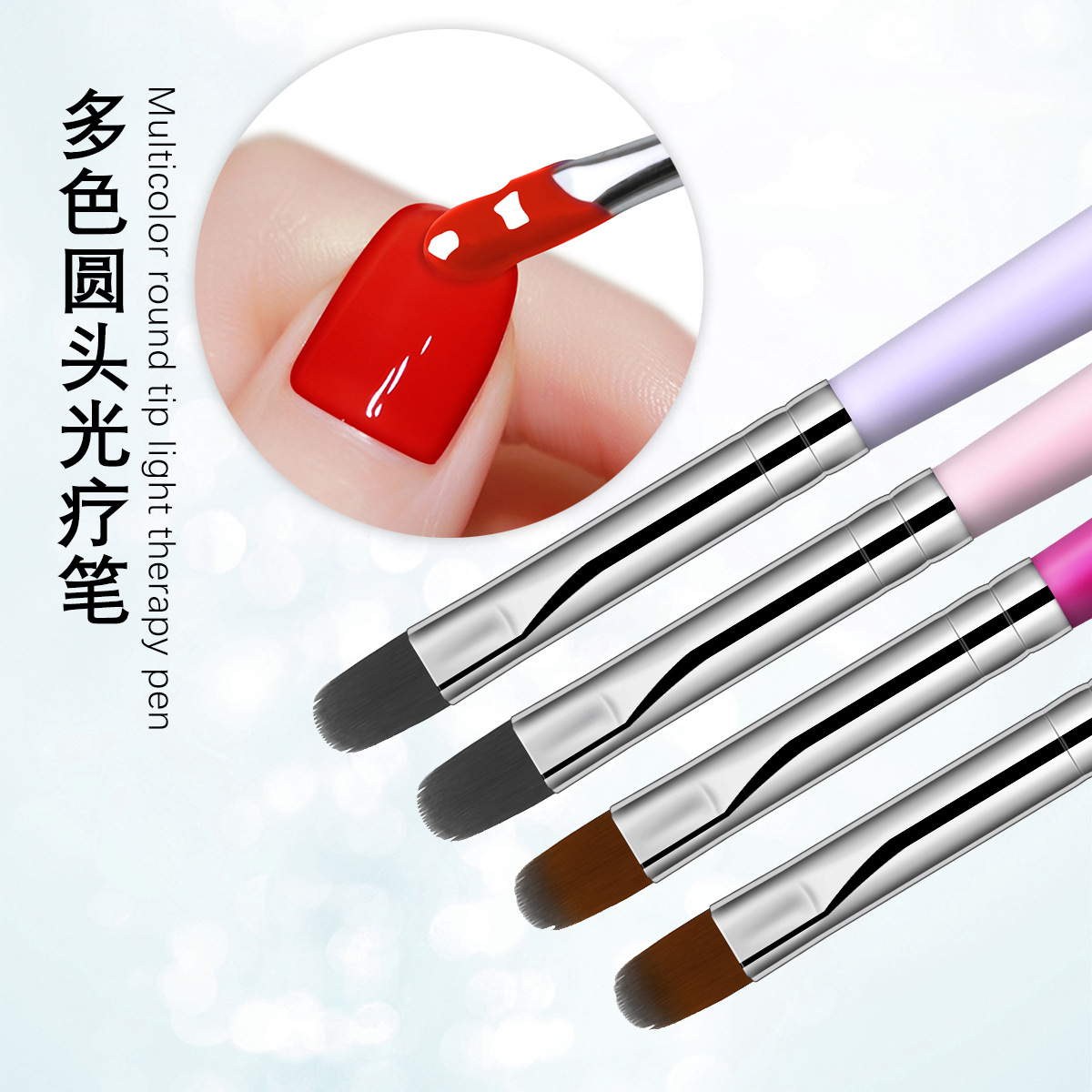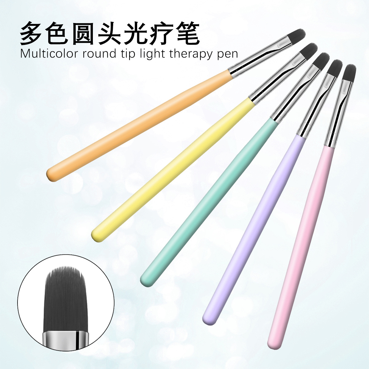 Cross-border especial degradado multicolor cabeza redonda pluma floreciente sello de uñas pluma de uñas herramienta de bricolaje cepillo floreciente