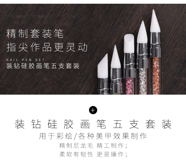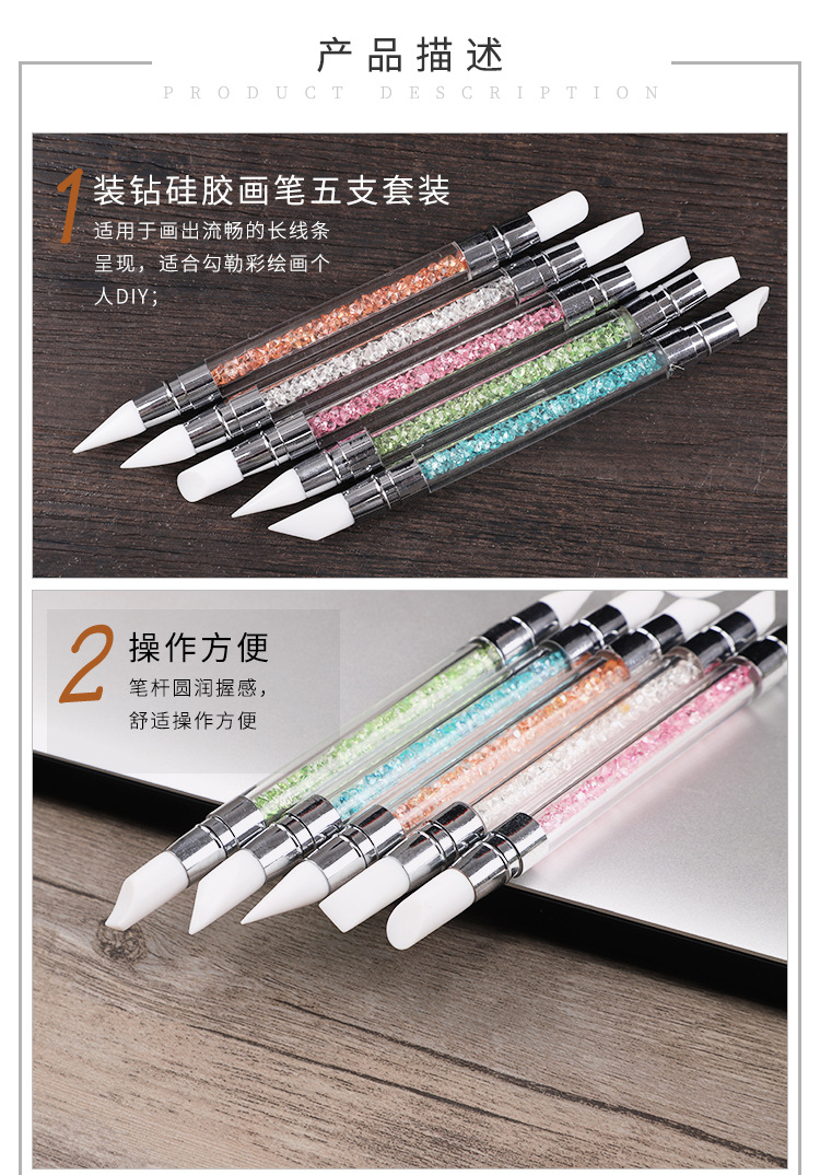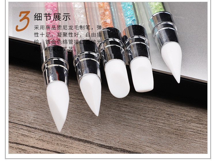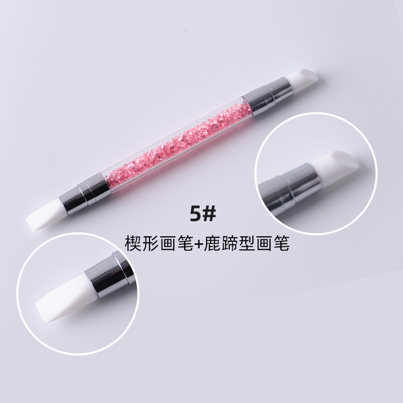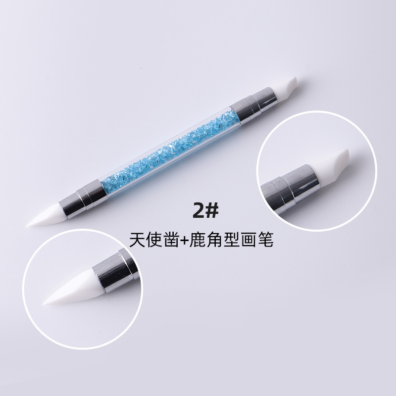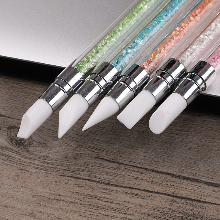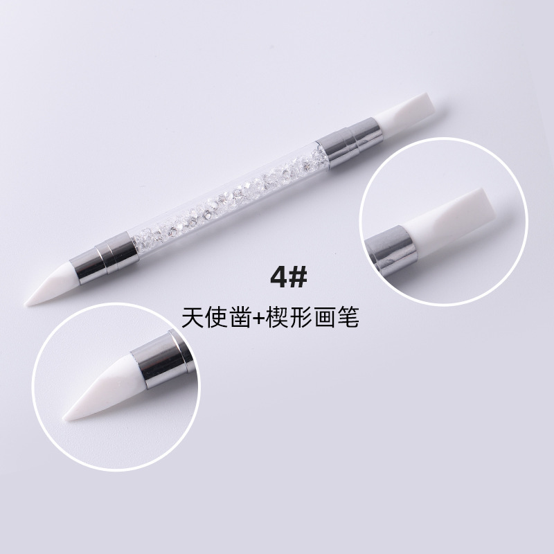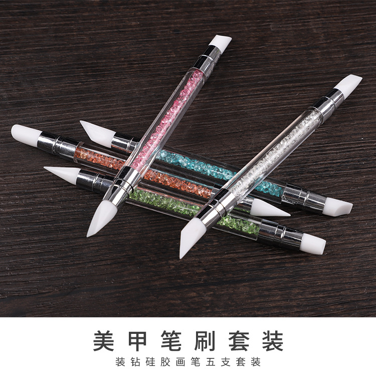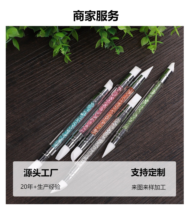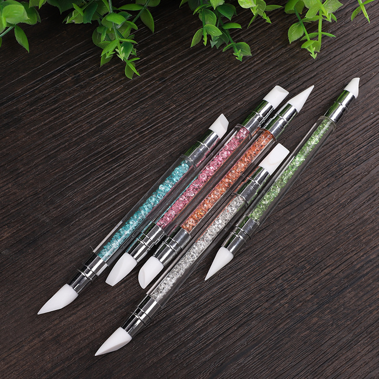 Selección estricta varilla de perforación de uñas pluma de silicona traje de pluma de uñas de doble cabeza espejo mágico pegatina en polvo Press stick tallado Ajuste de pegamento