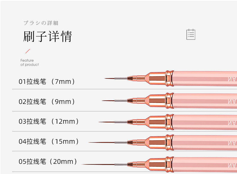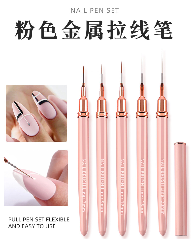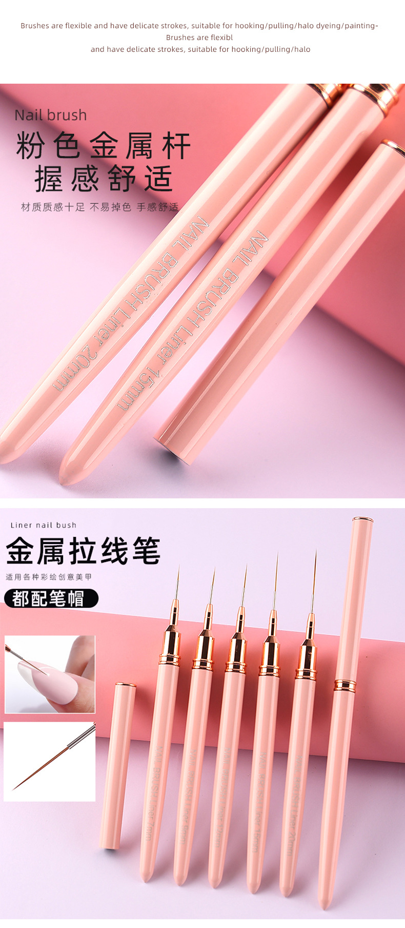 Tubo de aguja personalizado traje de pluma de dibujo de uñas Rosa varilla de metal muy fino bjd pluma facial hecha a mano pluma de dibujo al por mayor