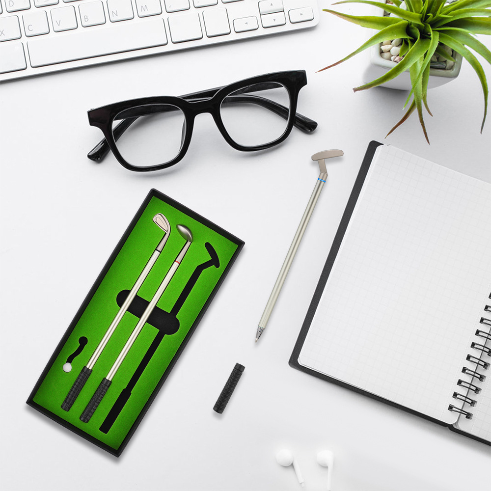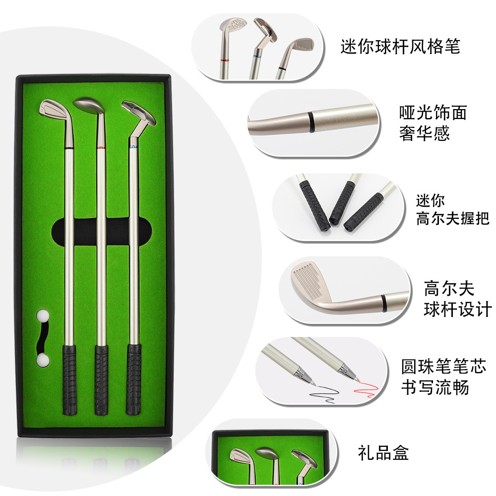 Cross-border en stock adolescentes Metal Bolígrafo Golf Club caja Pluma Mini Club Traje de golf