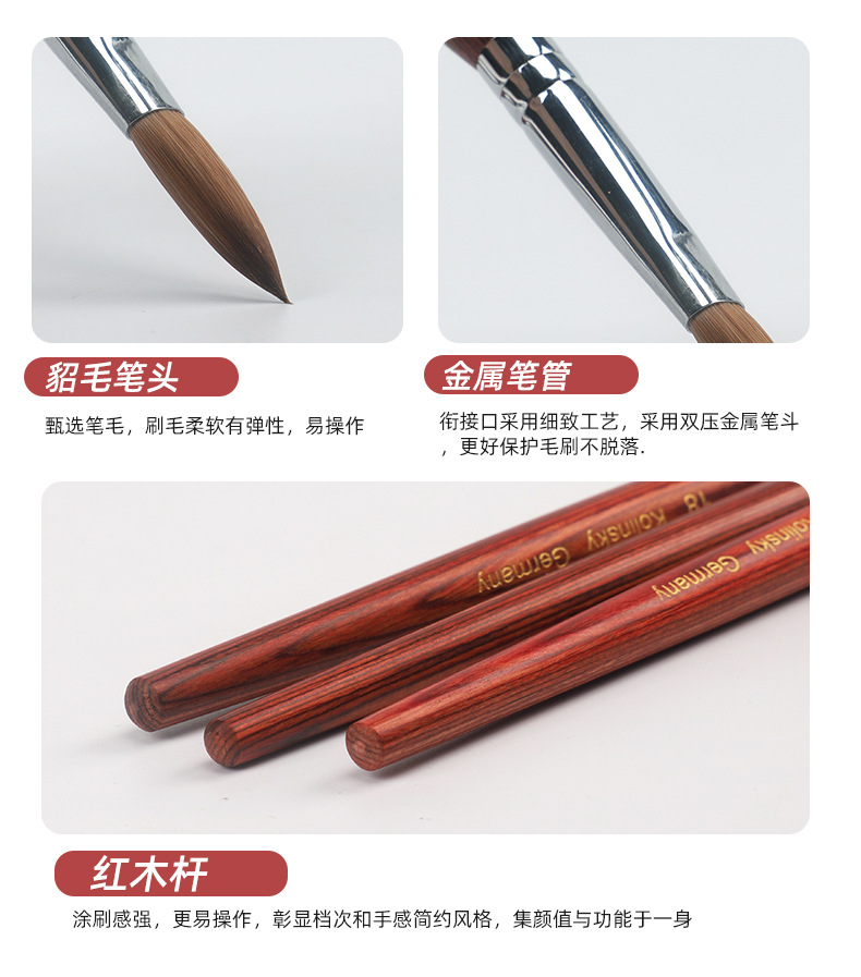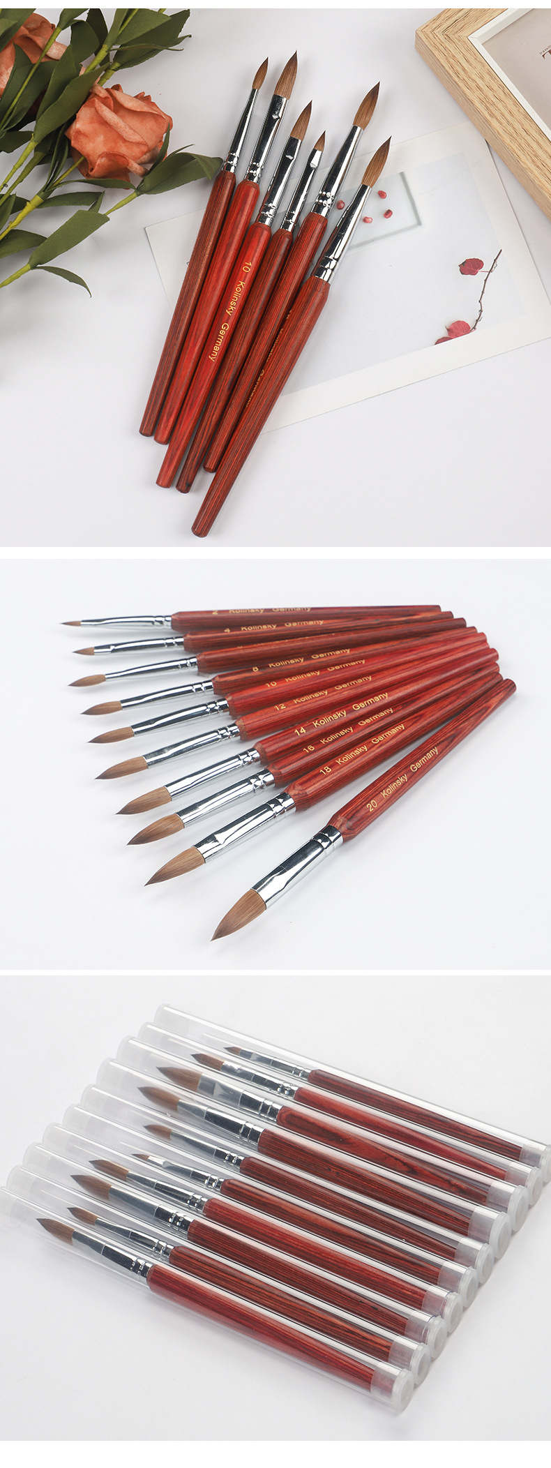 Cross-border puro pelo de visón arte de uñas cristal pluma Kolinsky cepillo de madera roja varilla siberiano tallado visón cepillo de pelo