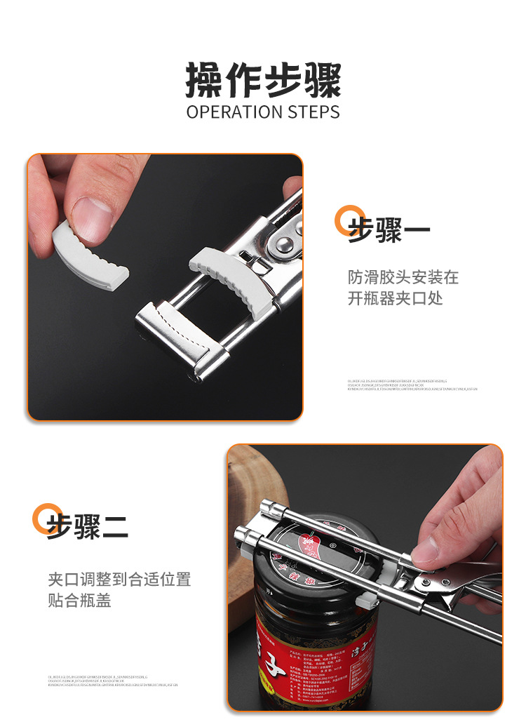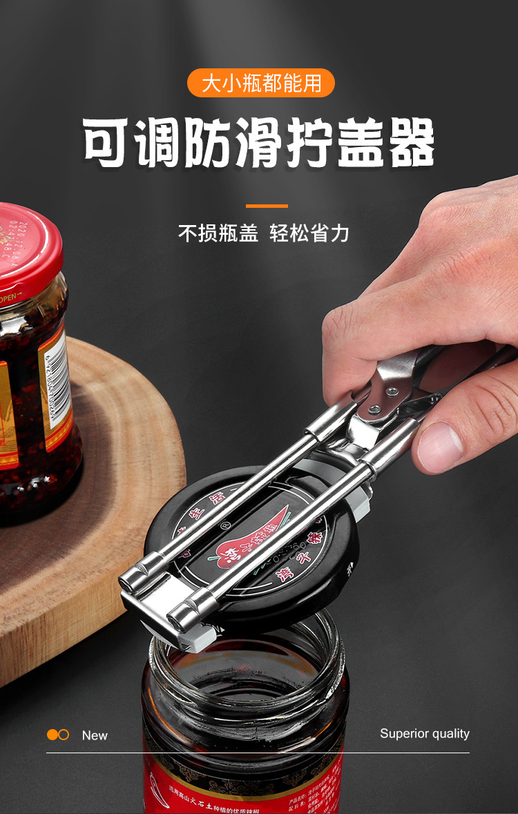 Amazon en stock nuevo antideslizante de acero inoxidable abrelatas abridor de botellas ajustable manual tapa giratoria herramientas de cocina