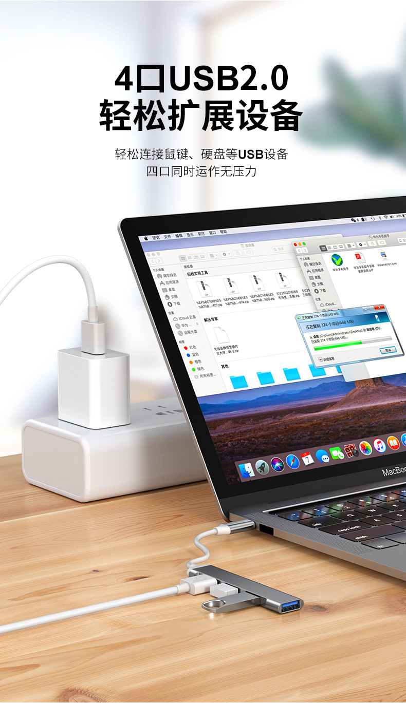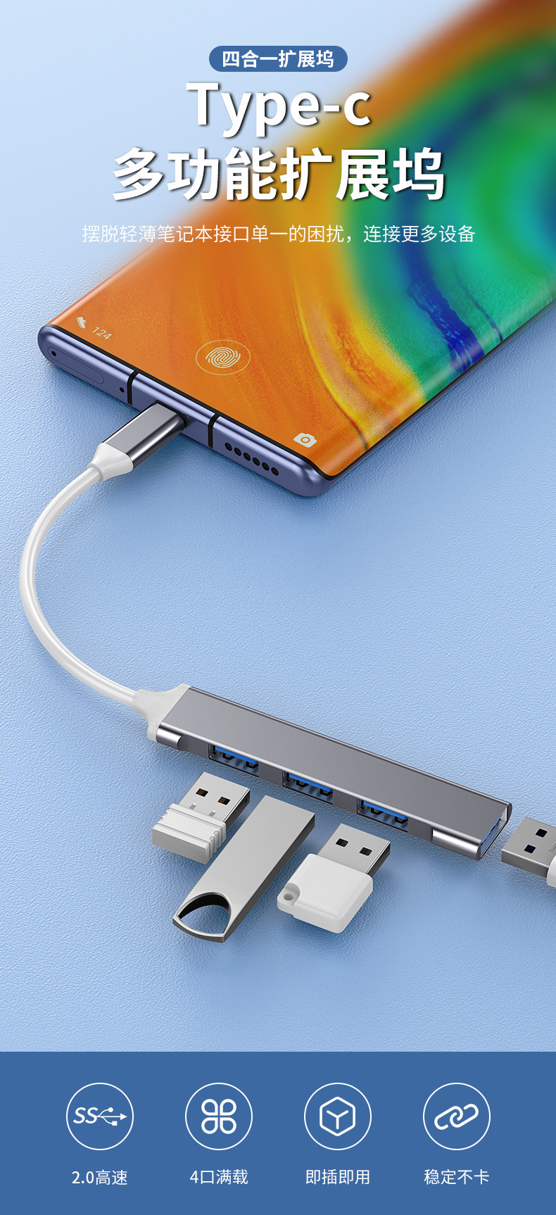 Typec estación de acoplamiento usb3.0hub extensor teléfono móvil computadora tableta divisor Hub montado en el vehículo de uno a cuatro