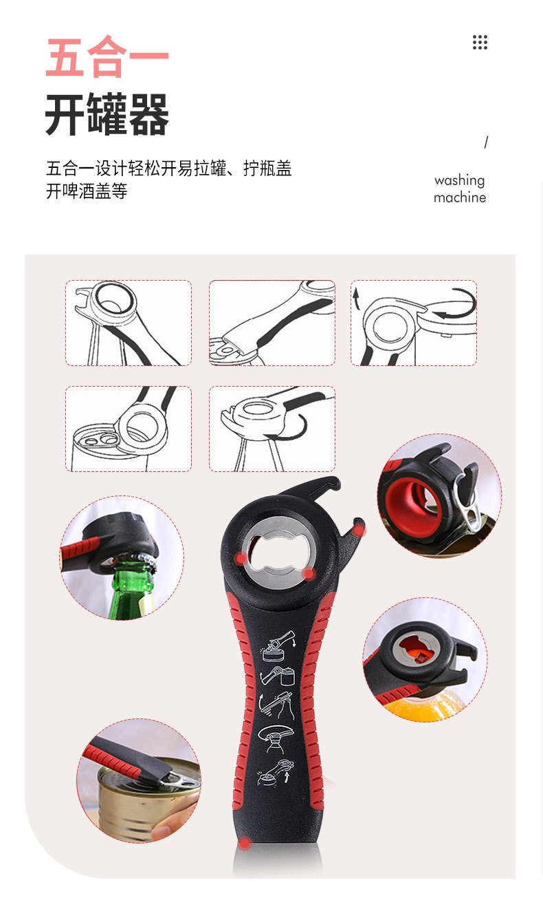 Amazon 5-en-1 abridor de botellas de cerveza creativo 8-Word puede 6-en-1 abrelatas traje abridor de tapa Cuatro en Uno